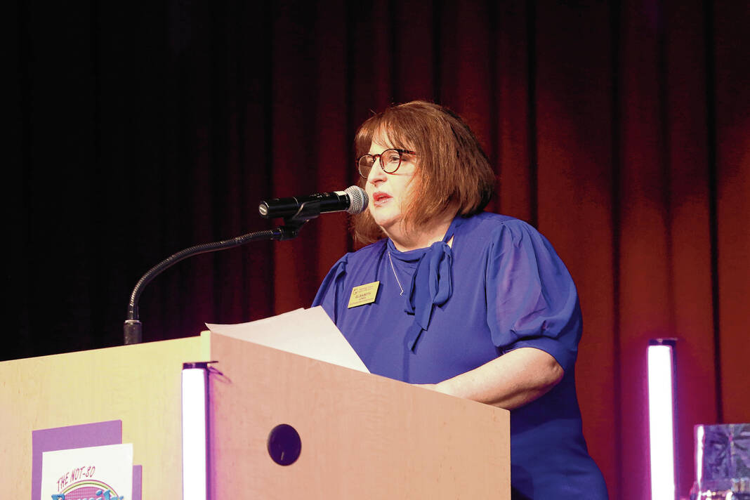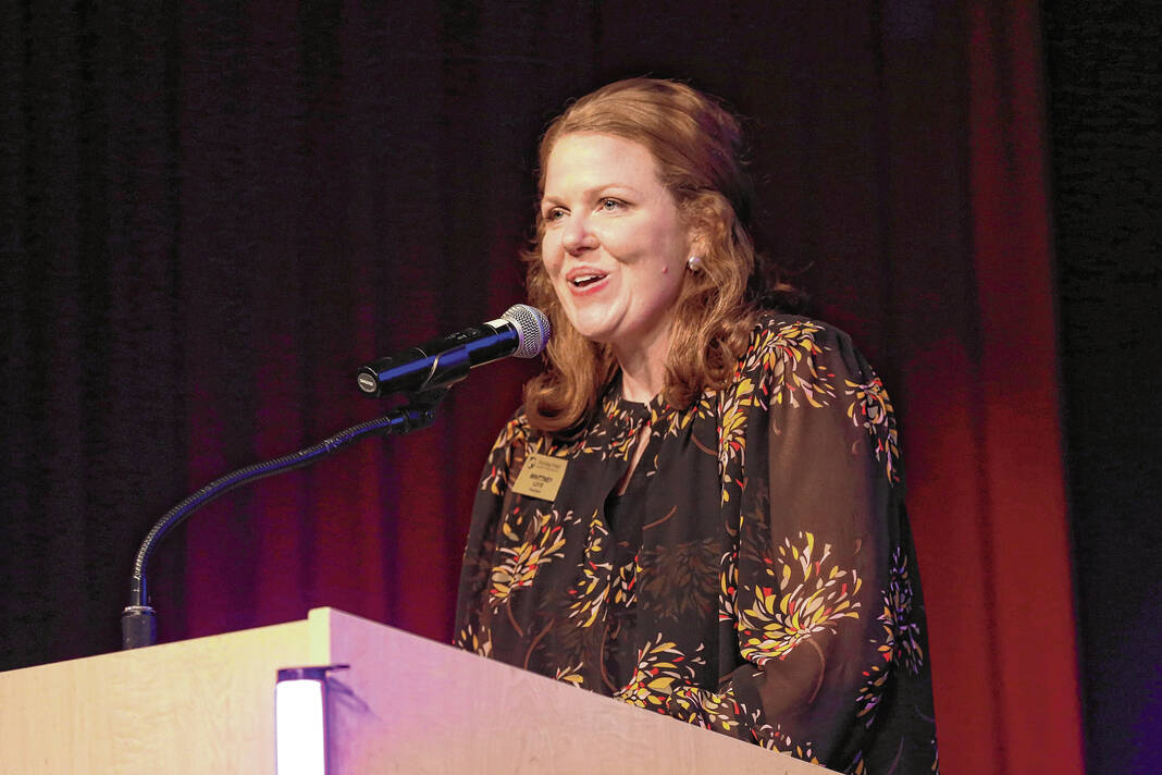 Carla Clark | For The Republic Whittney Loyd, Turning Point executive director, speaks during The Not-So Family Feud fundraiser for Turning Point Domestic Violence Services at the Commons, Columbus, Ind. Thursday, November 14, 2024.