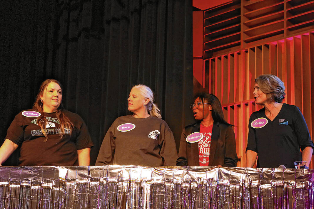 Carla Clark | For The Republic Team Airpark Campus, Amber Knopp, from left, Sara Dunlap, Ashanee Player and Kathy Oren during The Not-So Family Feud fundraiser for Turning Point Domestic Violence Services at the Commons, Columbus, Ind. Thursday, November 14, 2024.