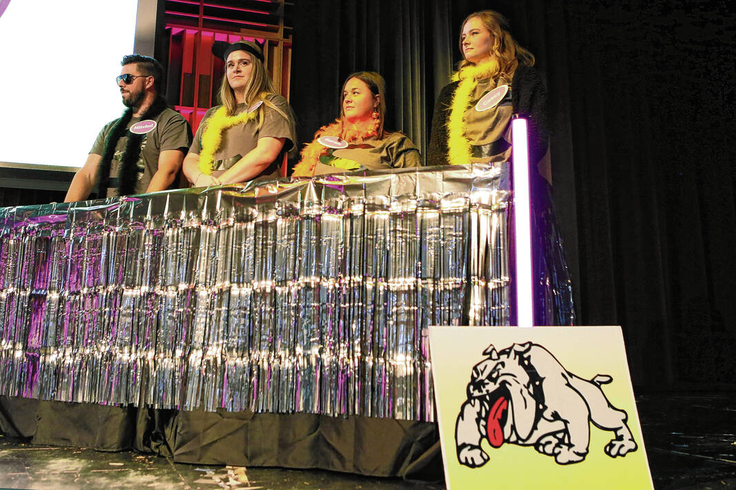 Carla Clark | For The Republic Team BCSC Mitchel Paswater, from left, Mallory Paswater, Sarah Elsbury and Casey Elsbury during The Not-So Family Feud fundraiser for Turning Point Domestic Violence Services at the Commons, Columbus, Ind. Thursday, November 14, 2024.