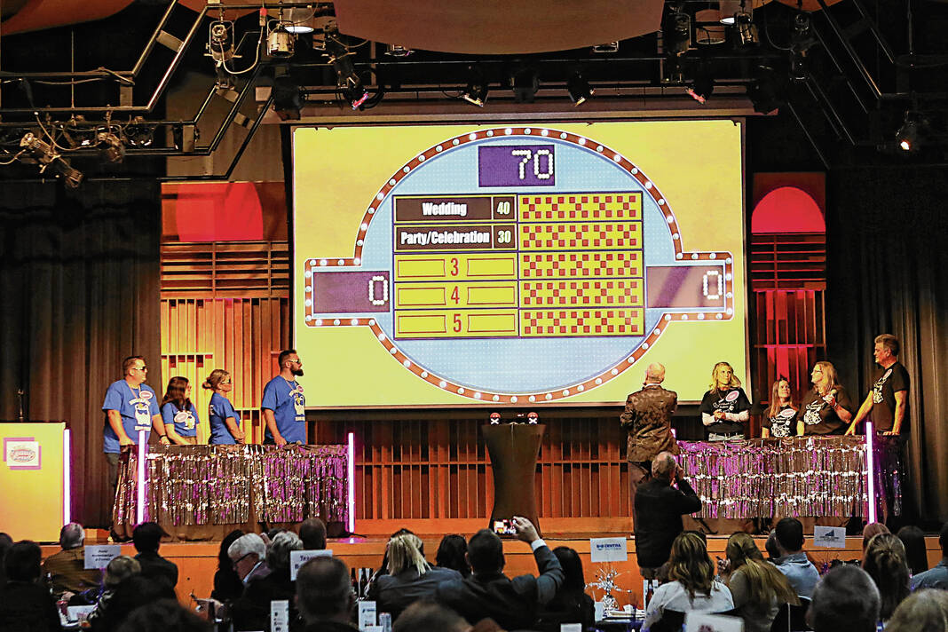 Carla Clark | For The Republic Team Turning Point Board and Family, at left, competes against Team Kenny Glass during The Not-So Family Feud fundraiser for Turning Point Domestic Violence Services at the Commons, Columbus, Ind. Thursday, November 14, 2024.