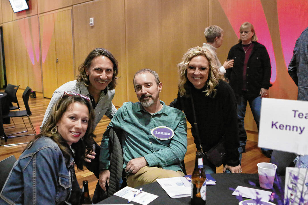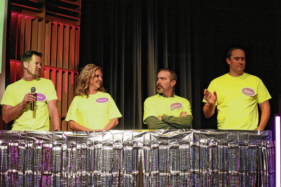 Carla Clark | For The Republic Kesshat Fischer, at left, Ryan Brand, Lonnie Fischer and Tricia Brand during The Not-So Family Feud fundraiser for Turning Point Domestic Violence Services at the Commons, Columbus, Ind. Thursday, November 14, 2024.