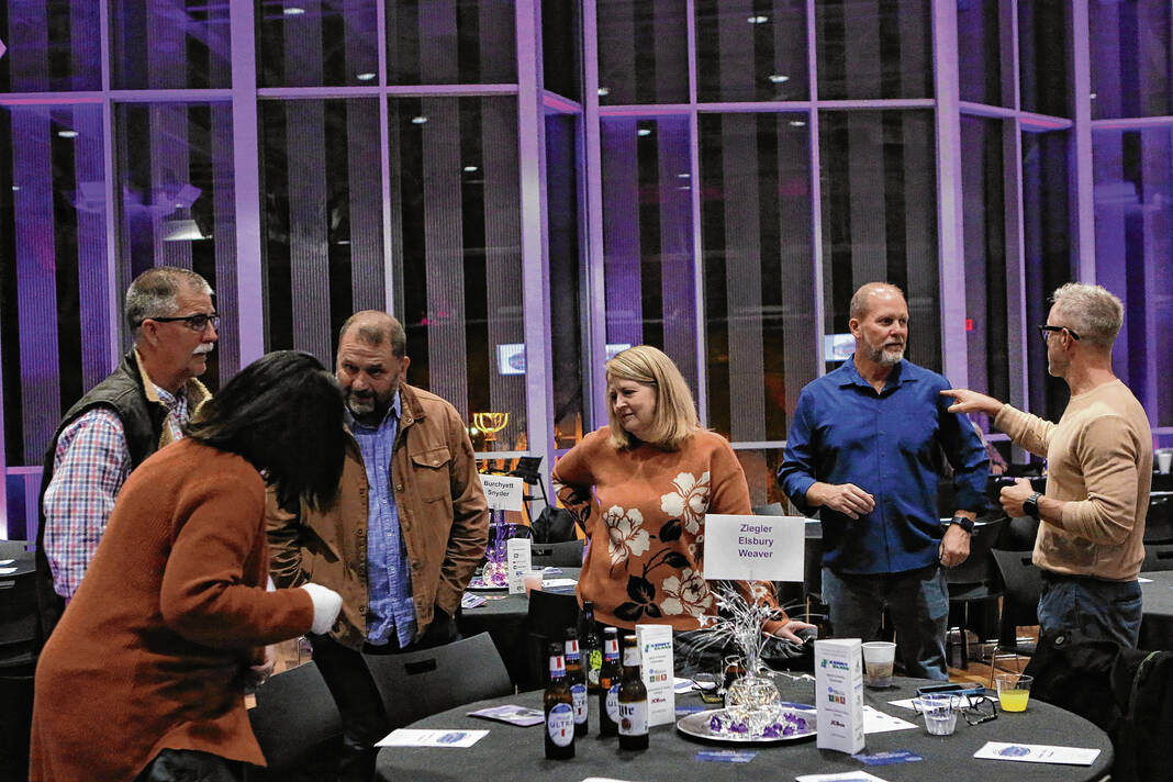 Carla Clark | For The Republic People mingle during The Not-So Family Feud fundraiser for Turning Point Domestic Violence Services at the Commons, Columbus, Ind. Thursday, November 14, 2024.