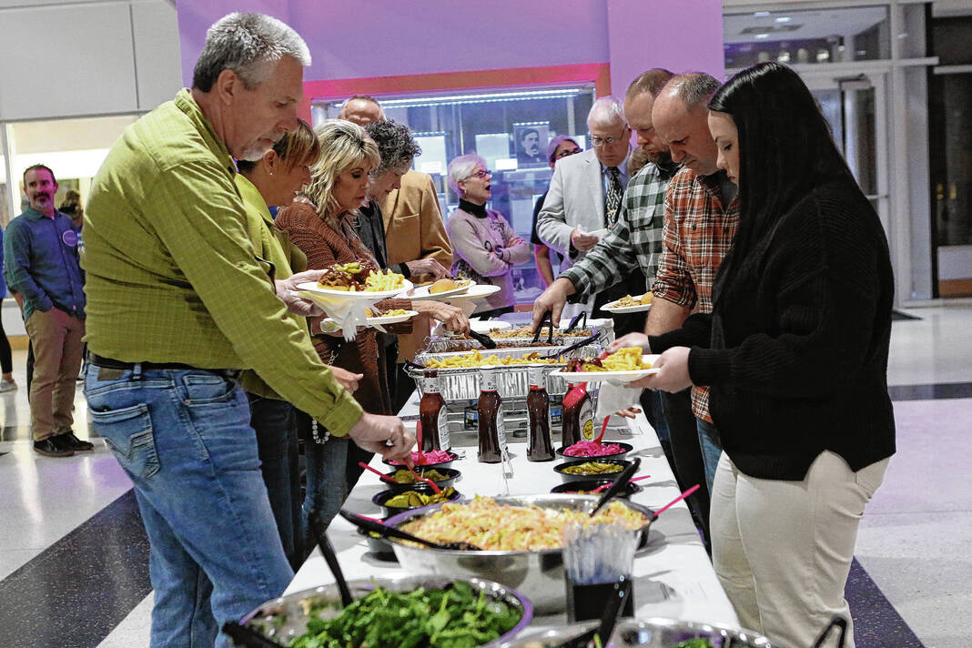 Carla Clark | For The Republic People at the dinner buffet during The Not-So Family Feud fundraiser for Turning Point Domestic Violence Services at the Commons, Columbus, Ind. Thursday, November 14, 2024.