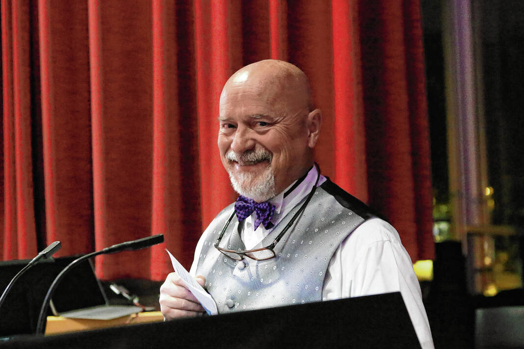 Carla Clark | For The Republic Alan Tirsler, announcer, during The Not-So Family Feud fundraiser for Turning Point Domestic Violence Services at the Commons, Columbus, Ind. Thursday, November 14, 2024.