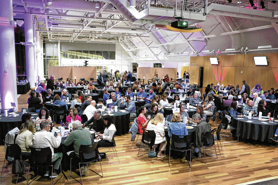 Carla Clark | For The Republic People have dinner during The Not-So Family Feud fundraiser for Turning Point Domestic Violence Services at the Commons, Columbus, Ind. Thursday, November 14, 2024.