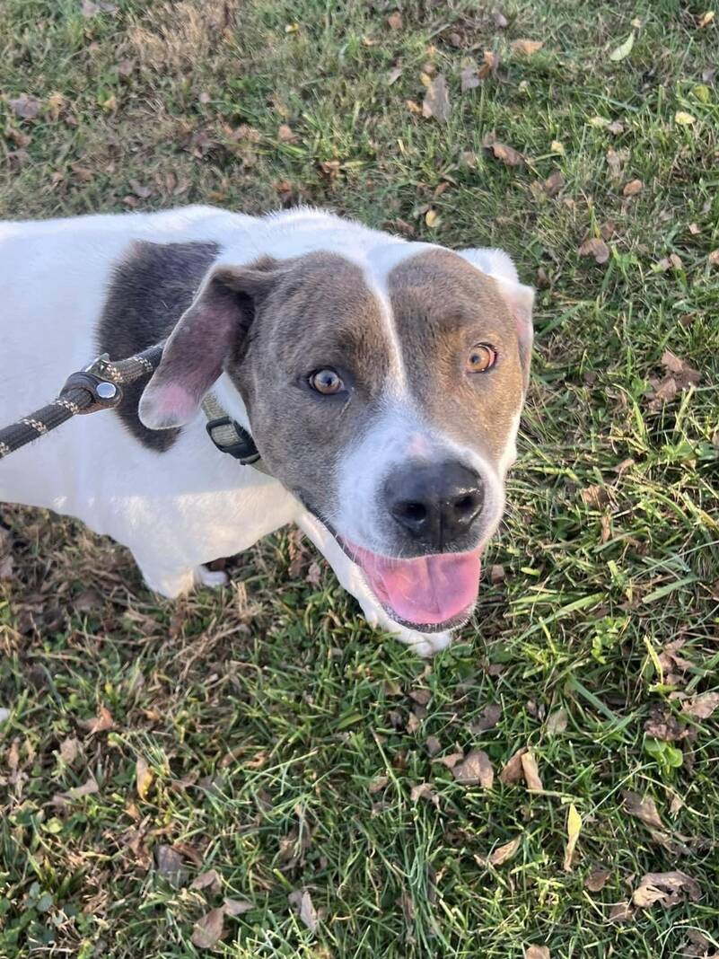 Leon is a 2-year-old, sweet and affectionate dog who greets us with smiles and a wagging tail. He is a bit of a couch potato and gets along well with other calm dogs. He’s not a high-energy dog, so a family that enjoys a relaxed lifestyle would be perfect for him!