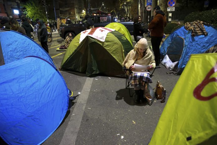 TBILISI, Georgia (AP) — Demonstrators in the capital of Georgia have set up tents on one of the city’s main thoroughfares and vowed Monday to stay there around the clock to demand new parliamentary elections in the country.