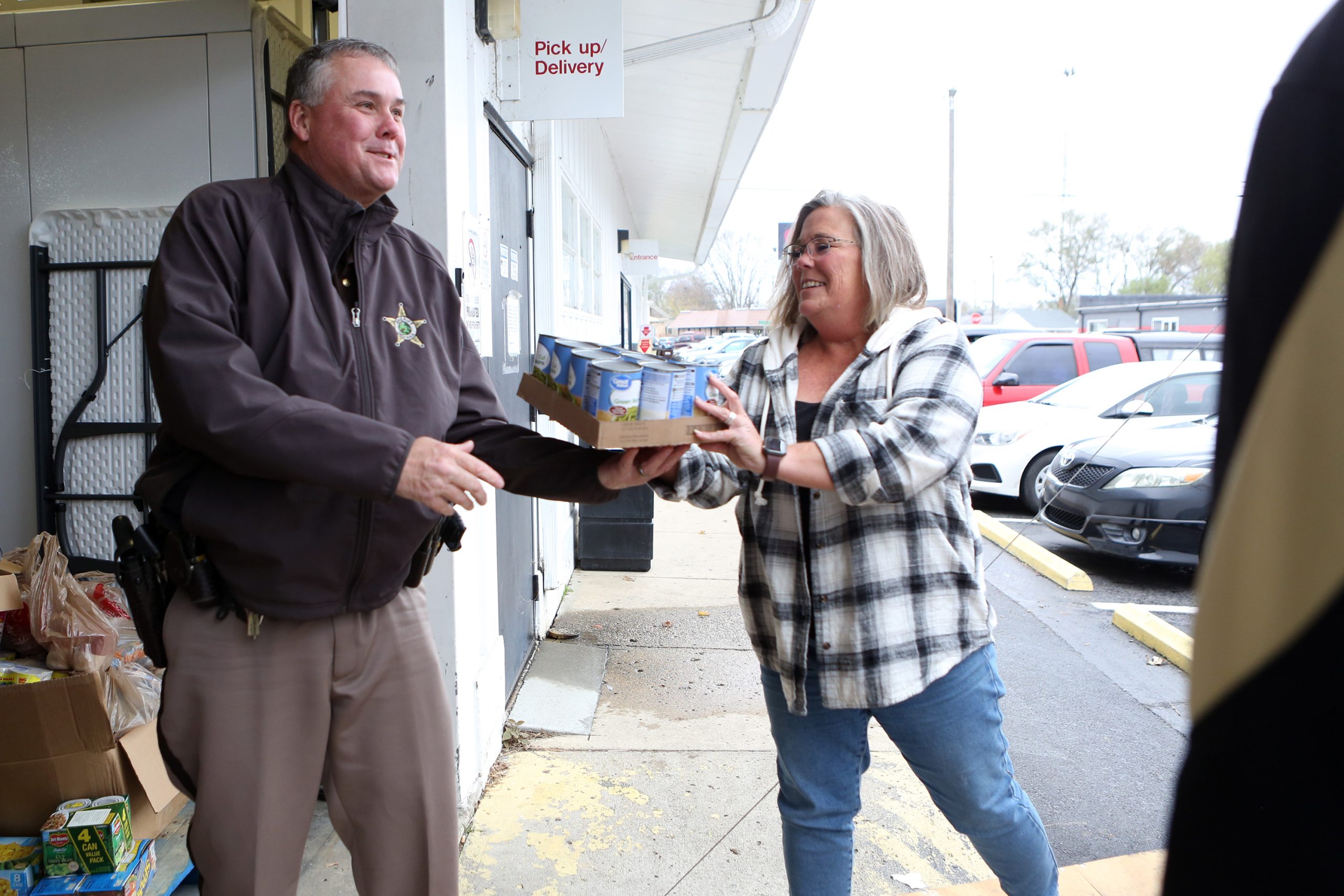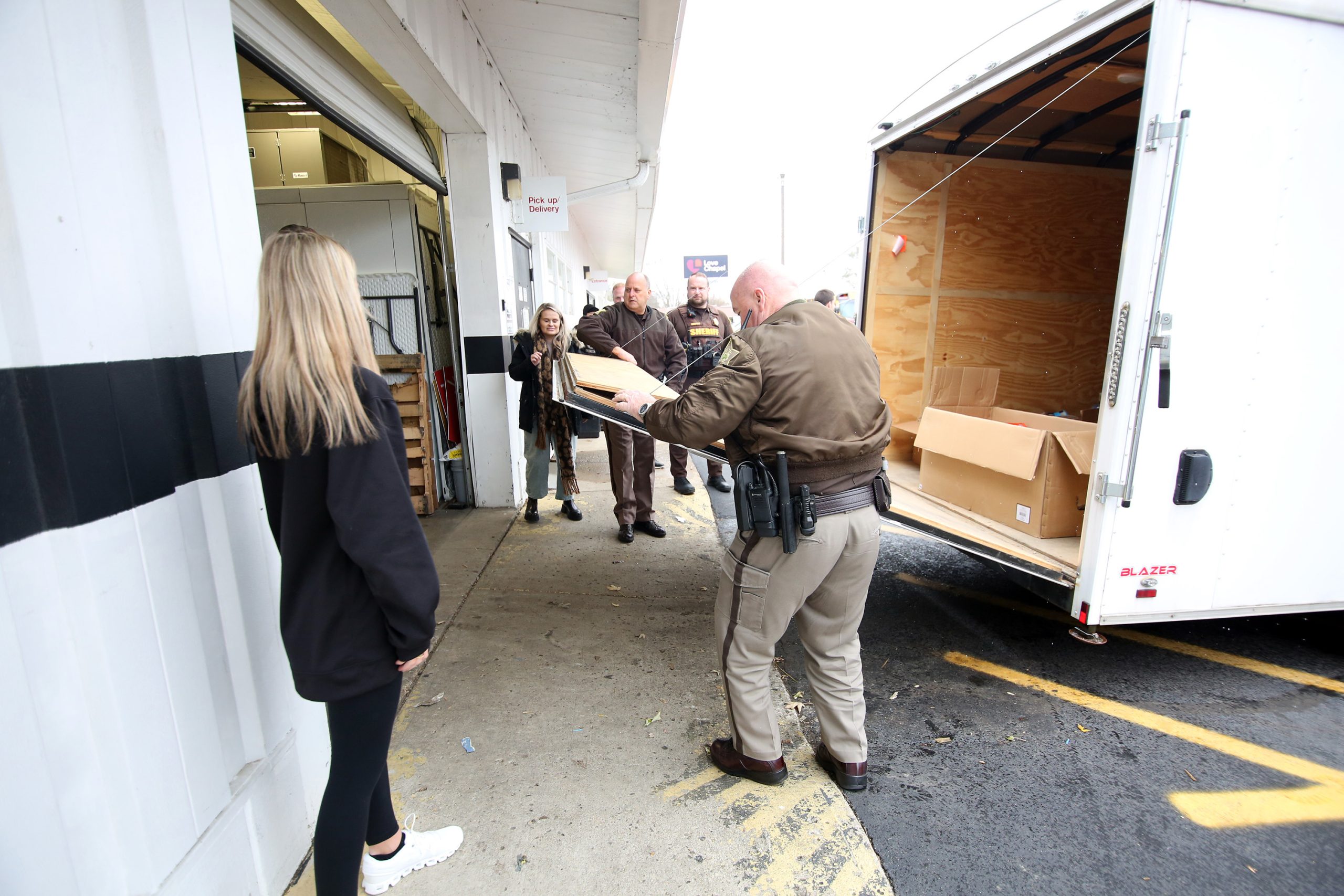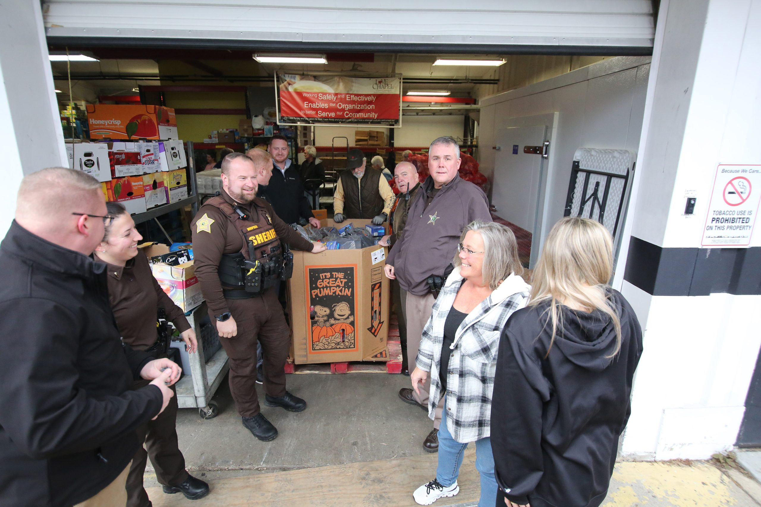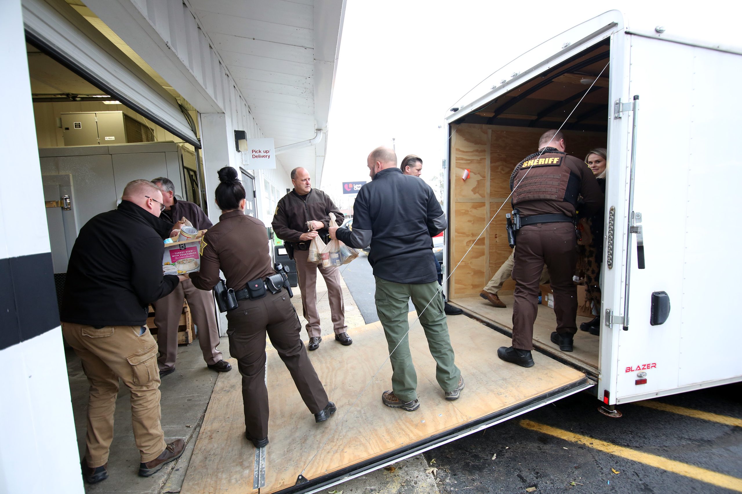 Carla Clark | For The Republic The sheriff, sheriff's deputies, staff and family members deliver the food that the Bartholomew County Sheriff Department collected during their annual Pack a Patrol Car food drive to Love Chapel, Columbus, Ind., Thursday, November 21, 2024.