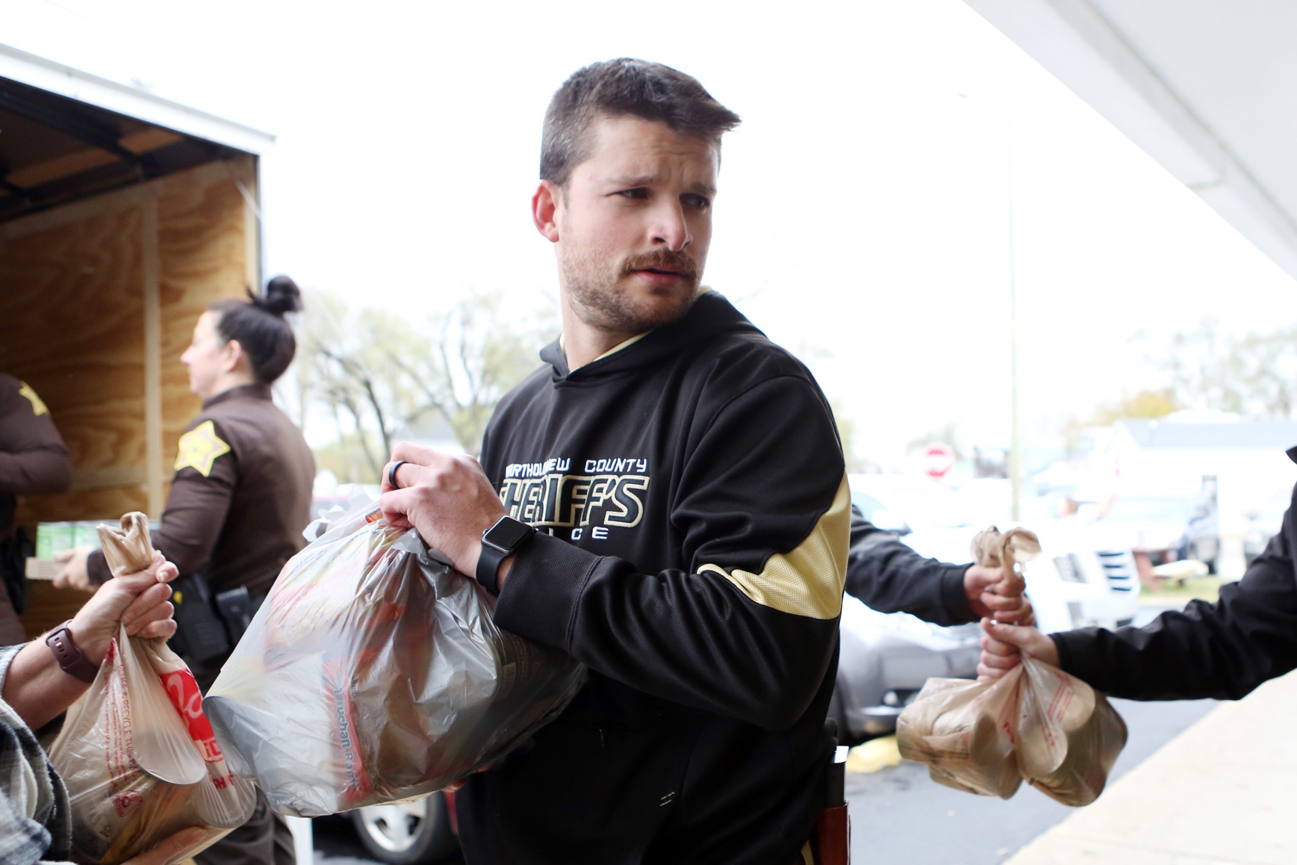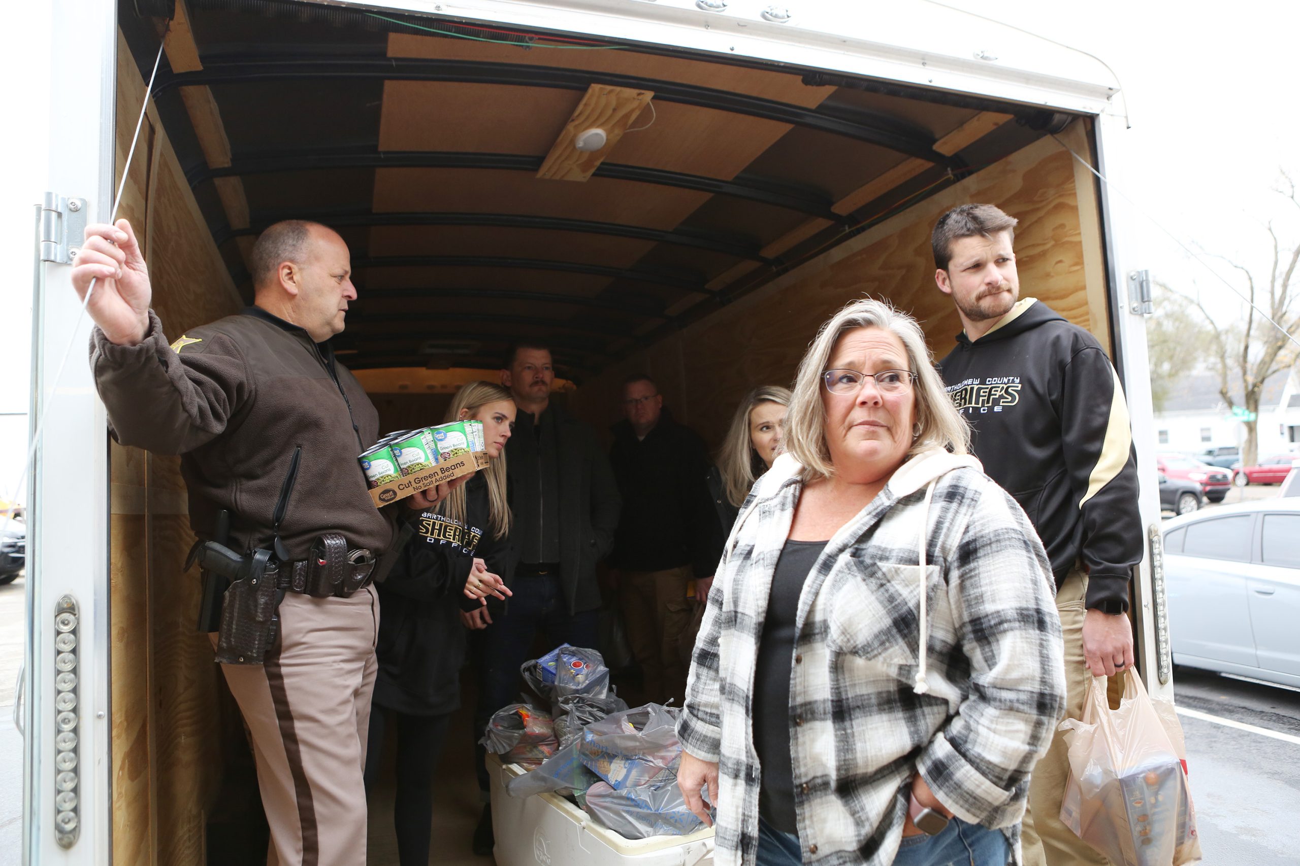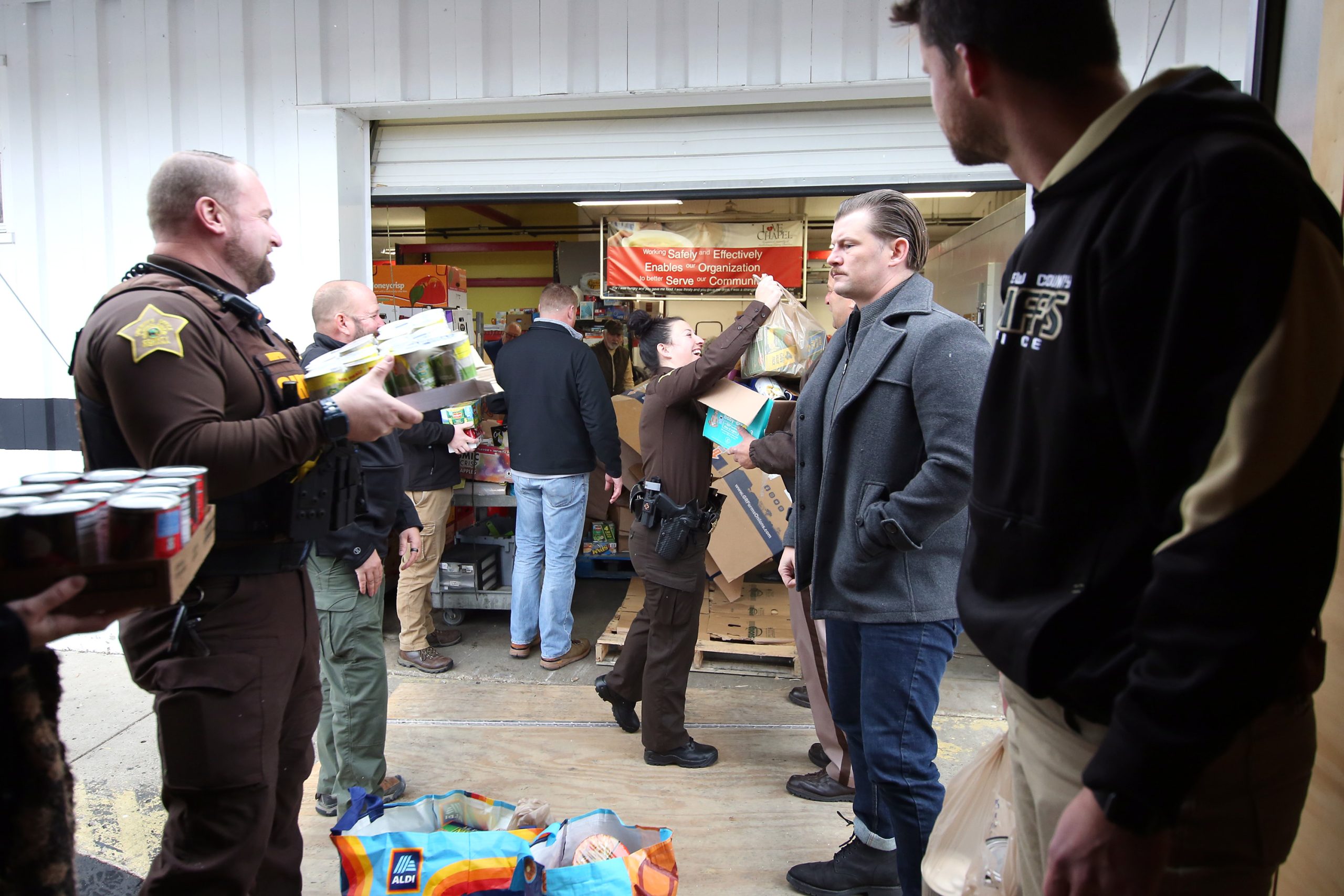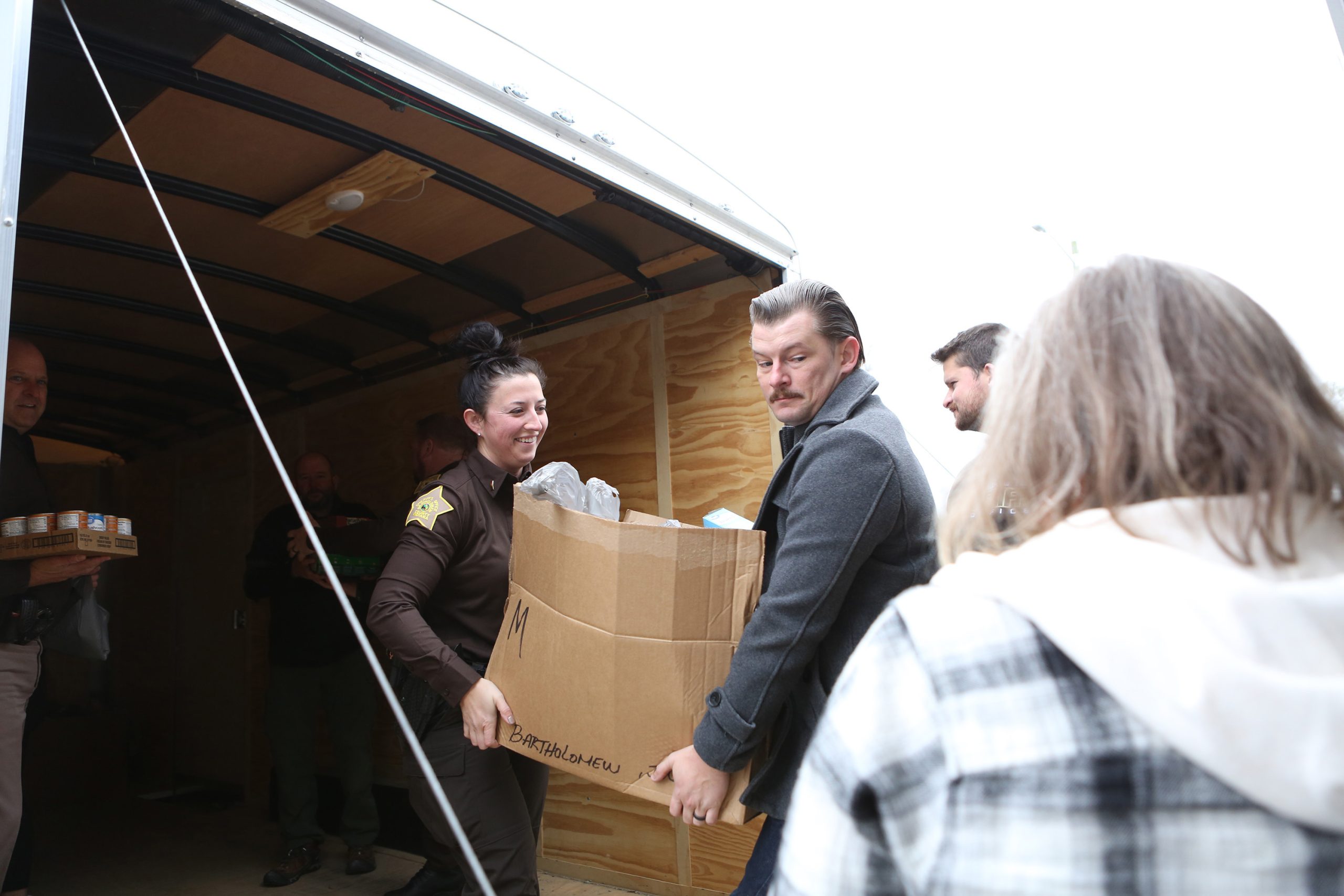 Carla Clark | For The Republic The sheriff, sheriff's deputies, staff and family members deliver the food that the Bartholomew County Sheriff Department collected during their annual Pack a Patrol Car food drive to Love Chapel, Columbus, Ind., Thursday, November 21, 2024.