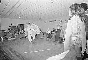 Children from two first grade classes at St. Columba Roman Catholic School, 1302 27th St., rehearse for their annual Thanksgiving Day performance on Nov. 26, 1974.
