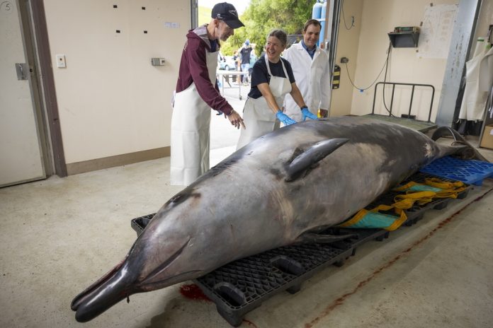 Van Helden has studied beaked whales for 35 years, but Monday was the first time he has participated in a dissection of the spade-toothed variety. In fact, the careful study of the creature — which washed up dead on a New Zealand beach in July — is the first ever to take place.