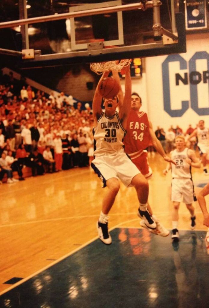 Corey Seegers goes up for a dunk against Columbus East during his playing days at Columbus North.