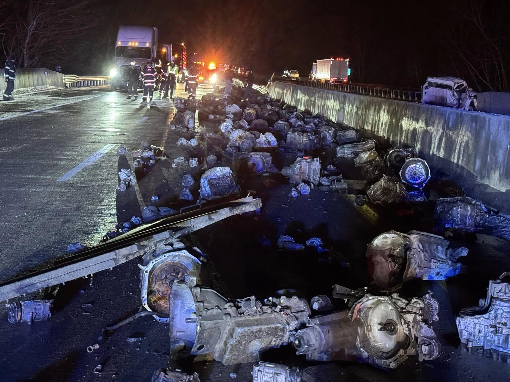State police clear accident scene in Jackson County involving spilled engines and transmissions