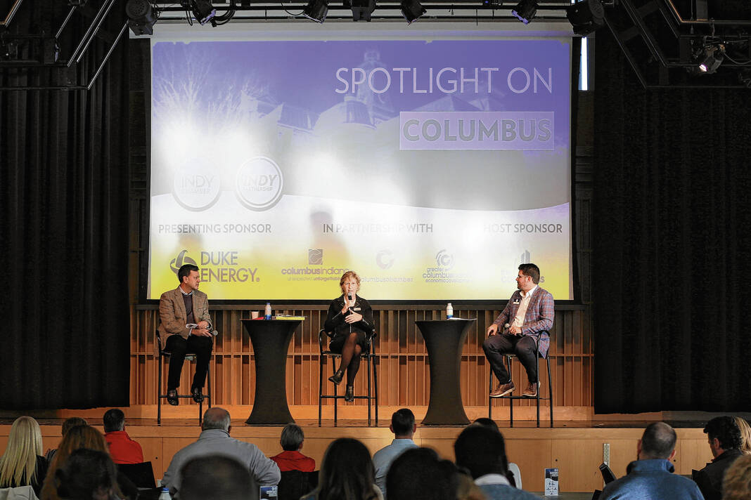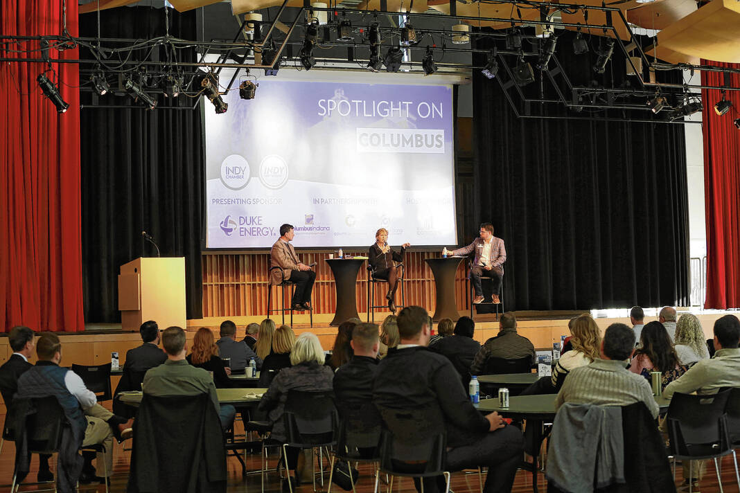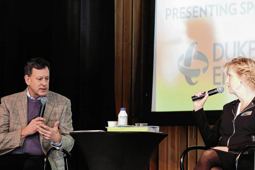 City officials and guests gathered with members from the region Friday morning to listen to a conversation between Mindrum, Stan Pinegar, president of Duke Energy’s Indiana operations and Columbus Mayor Mary Ferdon, where they discussed Bartholomew County and what economic advantages it brings to the table.