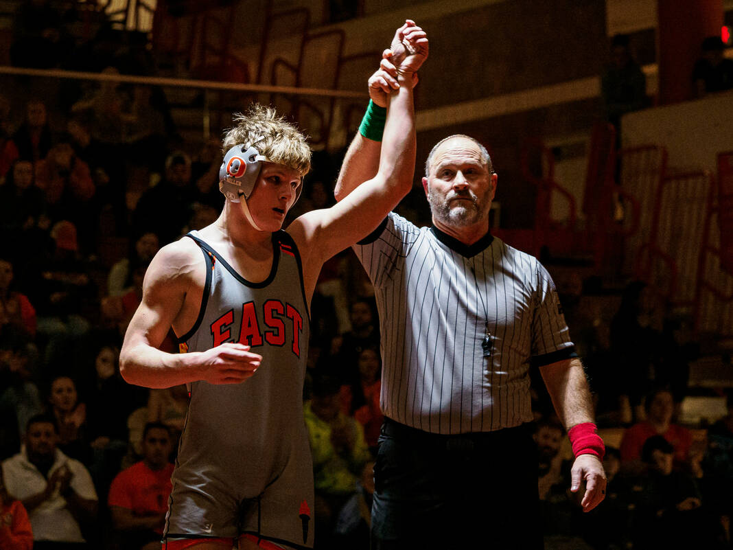 North’s Asher Ratliff pulled out a 1-0 decision against 11th-ranked Lincoln Cooper at 157 before East’s Clayton Miller edged Jackson Haston 14-13 at 165. The Olympians then got tech falls from Hank Redman at 175 and 16th-ranked Colin McMahon at 190, followed by an overtime pin from James Moss against Jon Morales at 215 and a 1-0 overtime decision from Dom Piper against Servando Lozano at 285.