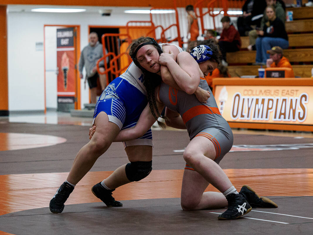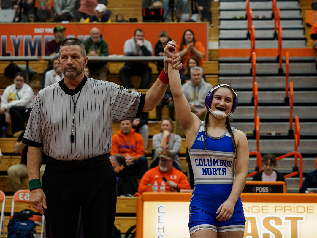The first official dual match between the Columbus East and Columbus North girls wrestlers went much like the match between their boys counterparts did Wednesday night.