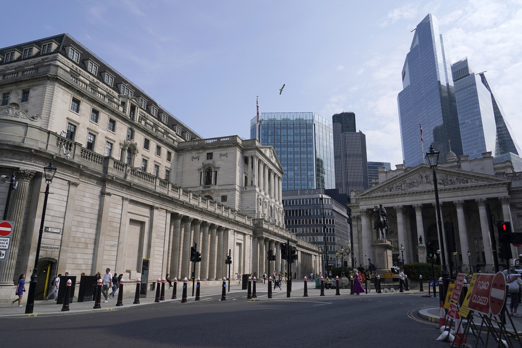 LONDON (AP) — The U.K.’s central bank is set to keep interest rates on hold later Thursday as inflation has moved further above its target rate, even though the British economy is flatlining at best.