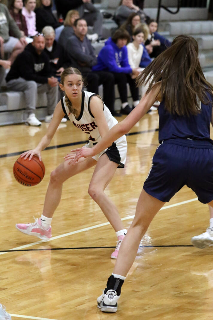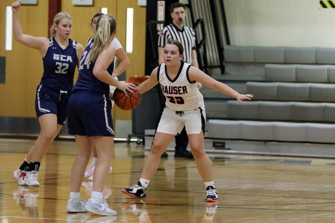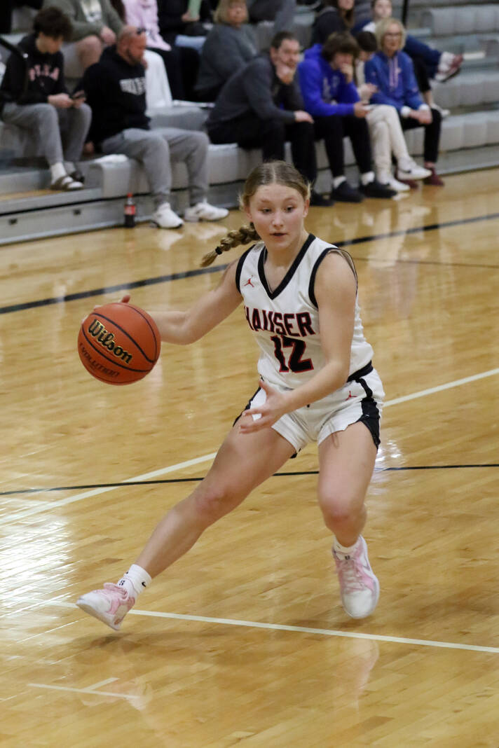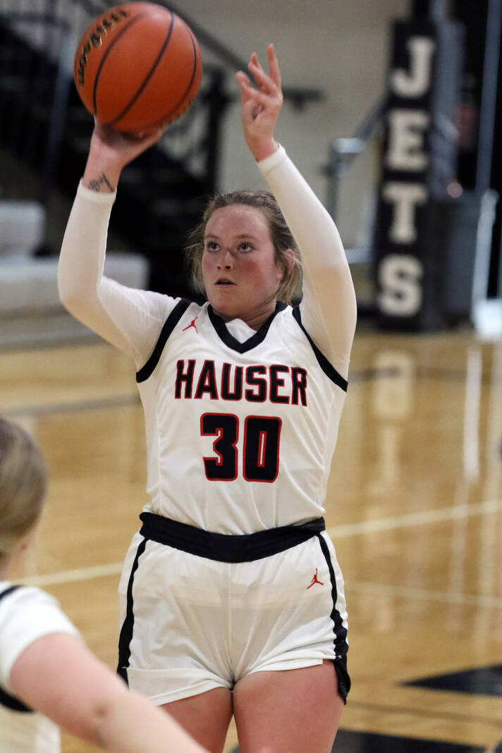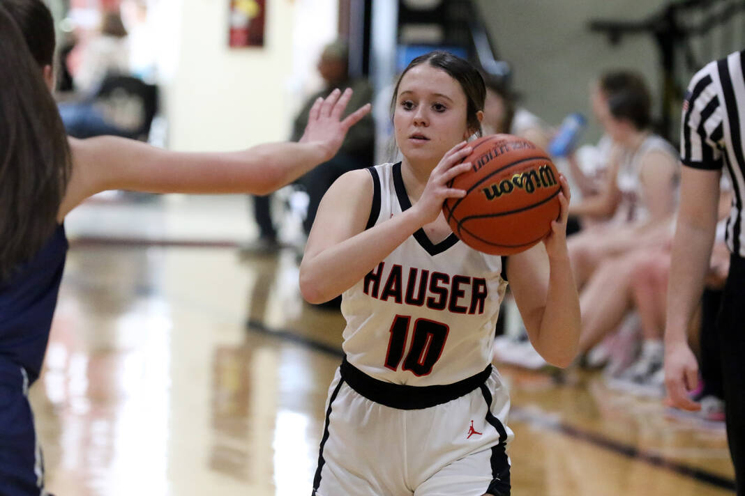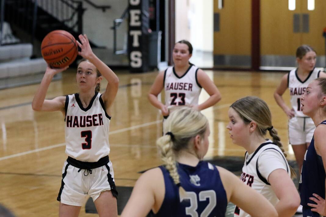 Abby Manley finished with 11 points to lead Hauser. June Berkenstock and Kennedy Konradi scored seven apiece, and Norah Berkenstock added six.