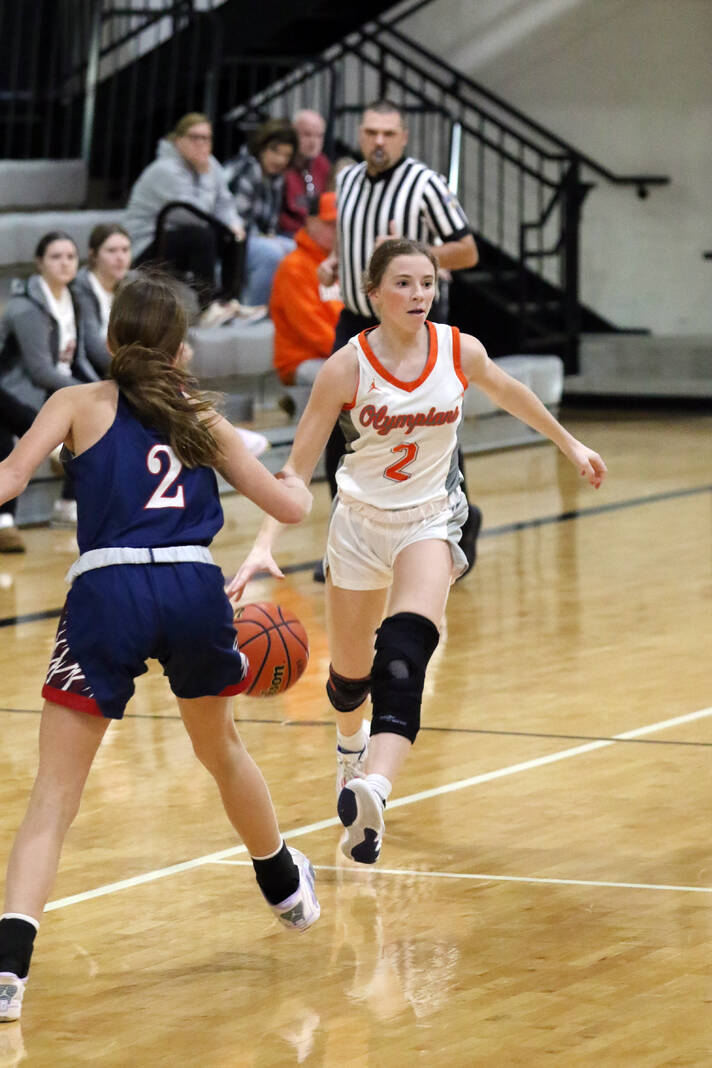 Kimberly Carothers and Lola Watkins led the Olympians with nine points each. Kenzie Cheek finished with eight, and Ella Anthis added four.