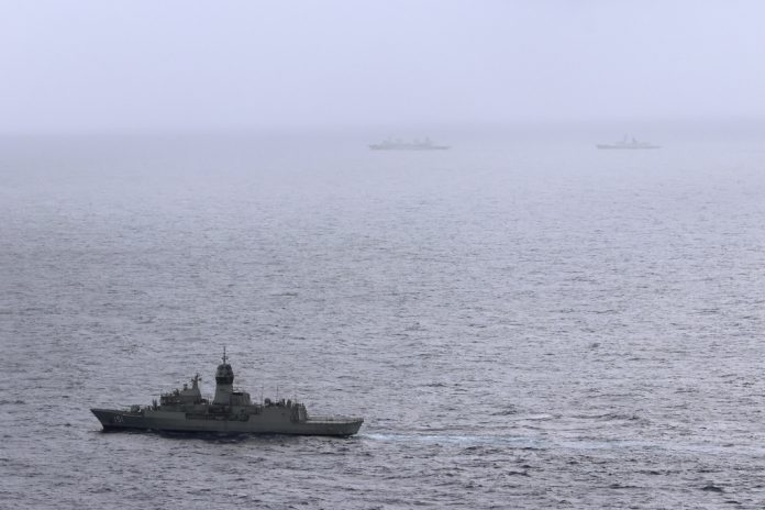 The warships — frigate Hengyang, cruiser Zunyi and replenishment vessel Weishanhu — are exercising a freedom of navigation in international waters off the Australian east coast of a kind that angers Beijing when exercised by the Australian military in the disputed South China Sea.