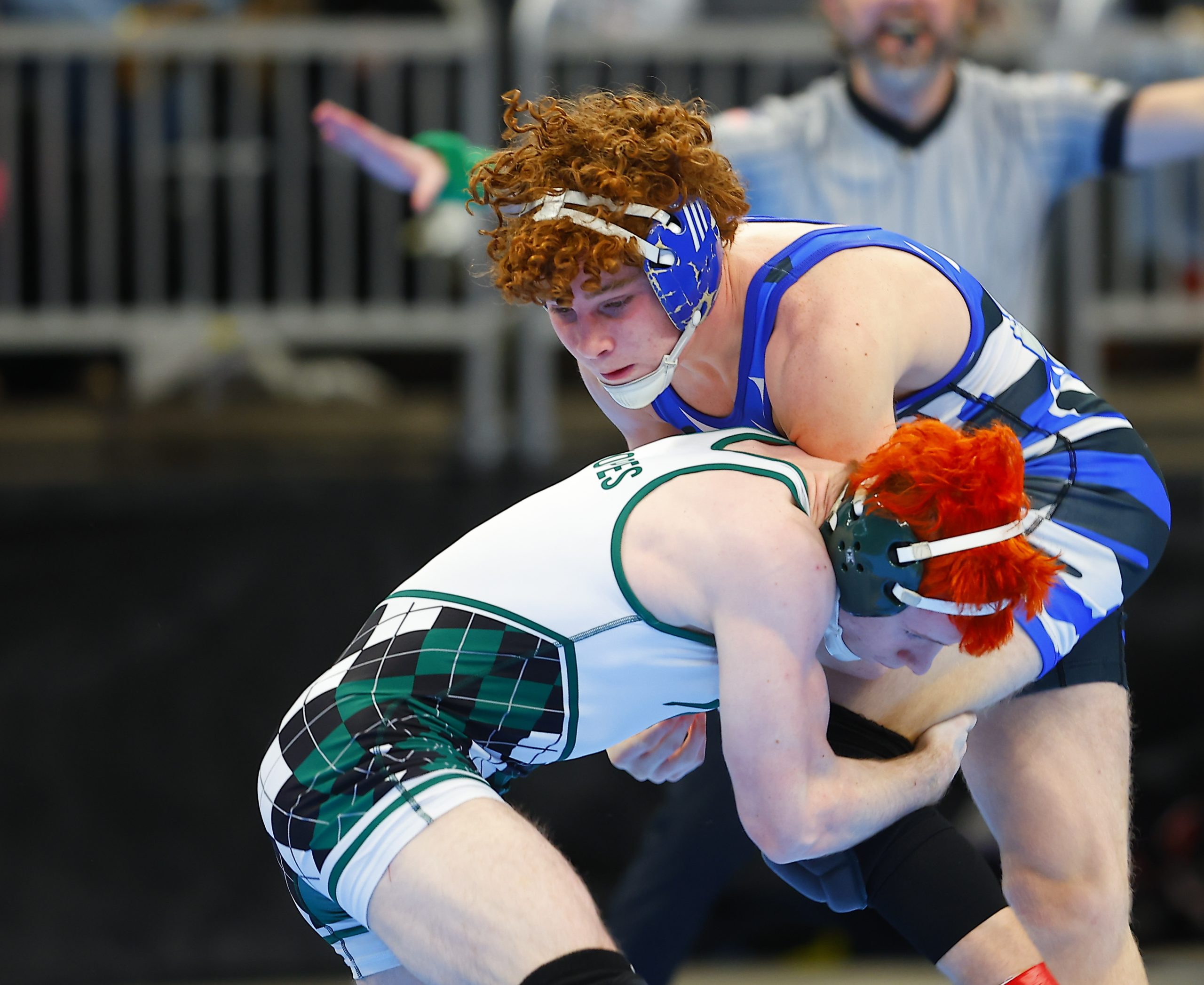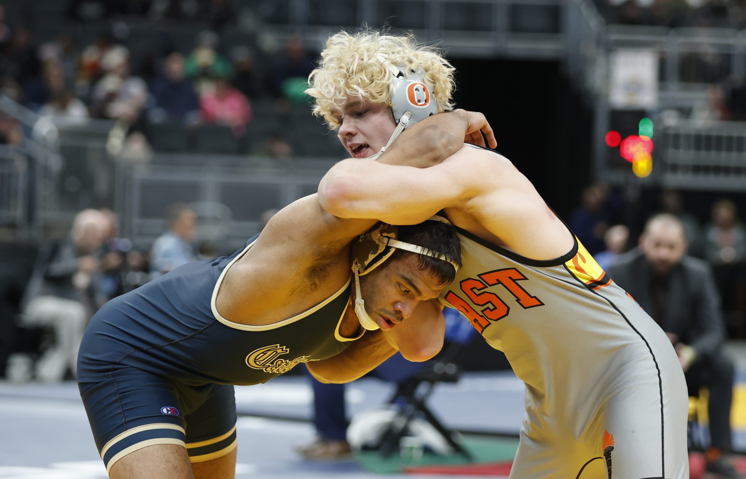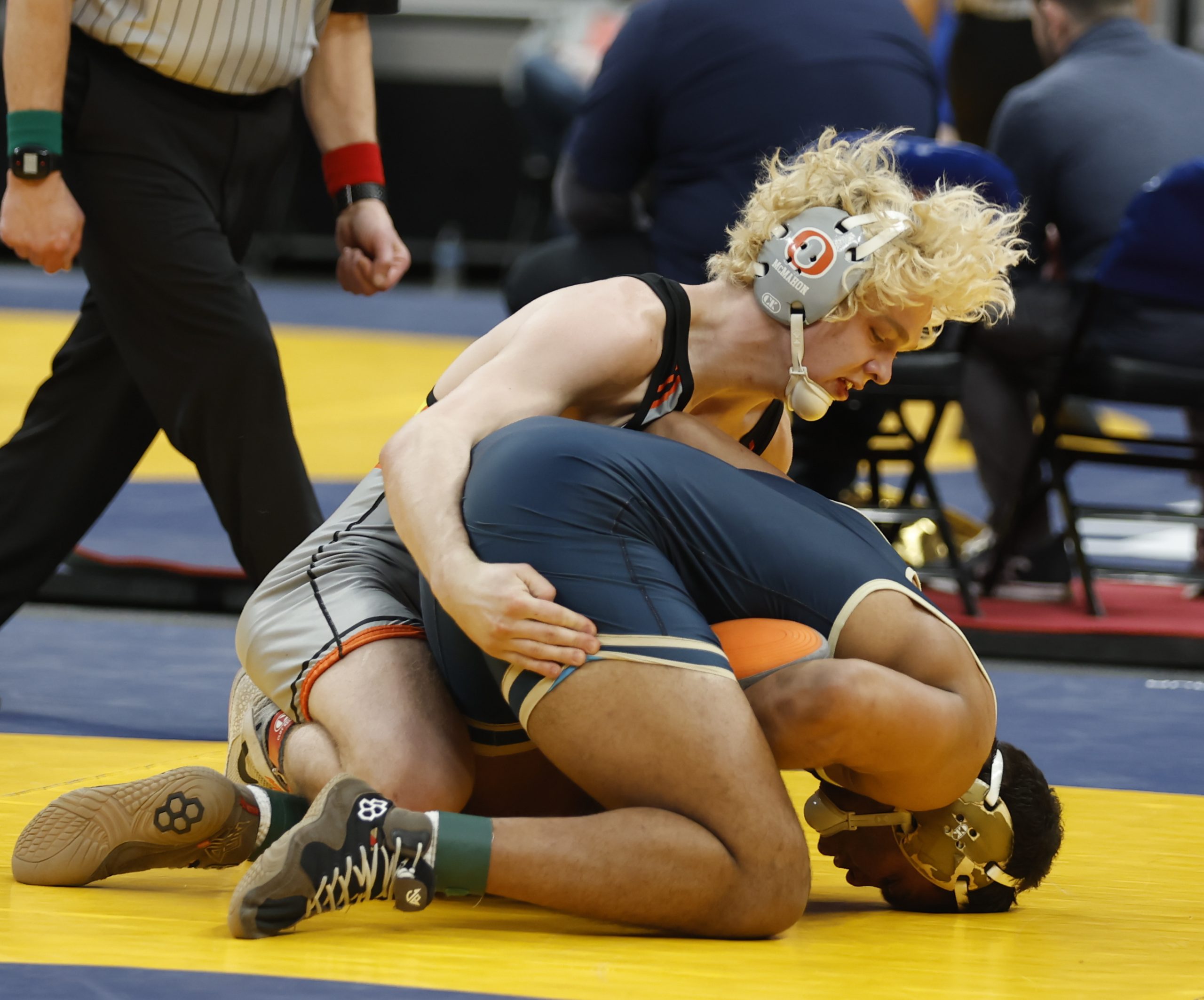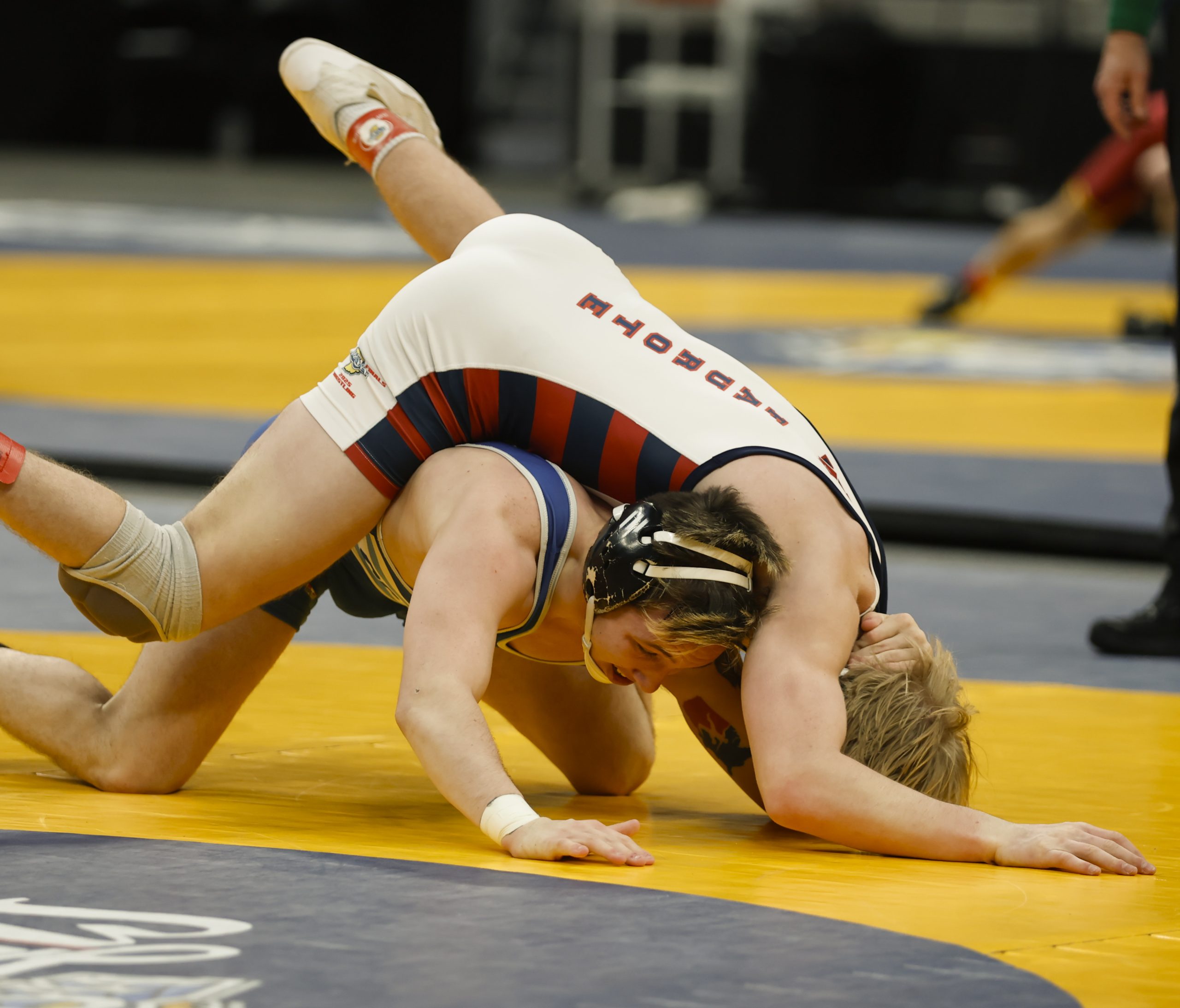 Sophomore Cohen Long, ranked 25th-at 144 pounds, upset seventh-ranked Wyatt Hoppes of Yorktown 4-2. Long scored a takedown 36 seconds into the match and gave up an escape later in the first period. He still led 3-1 before being assessed a penalty for a second stalling violation with 25 seconds remaining, but then managed an escape and held on for the win.