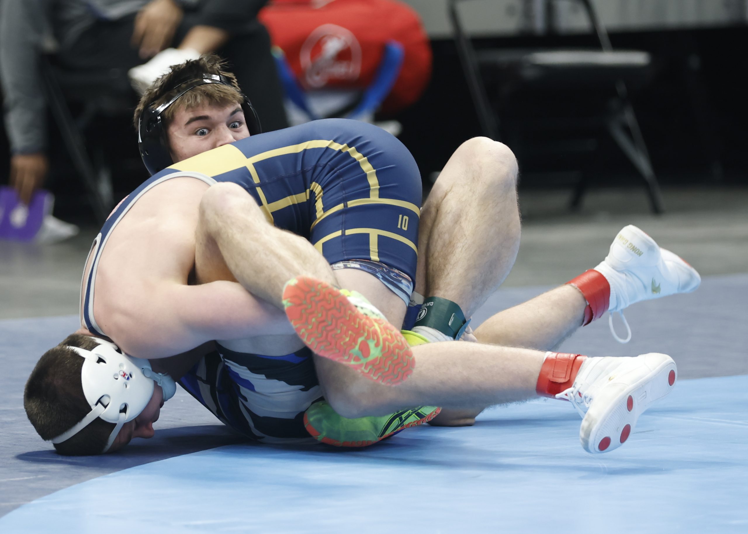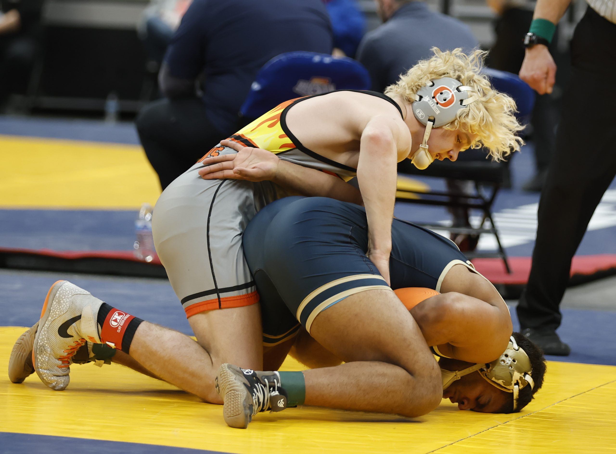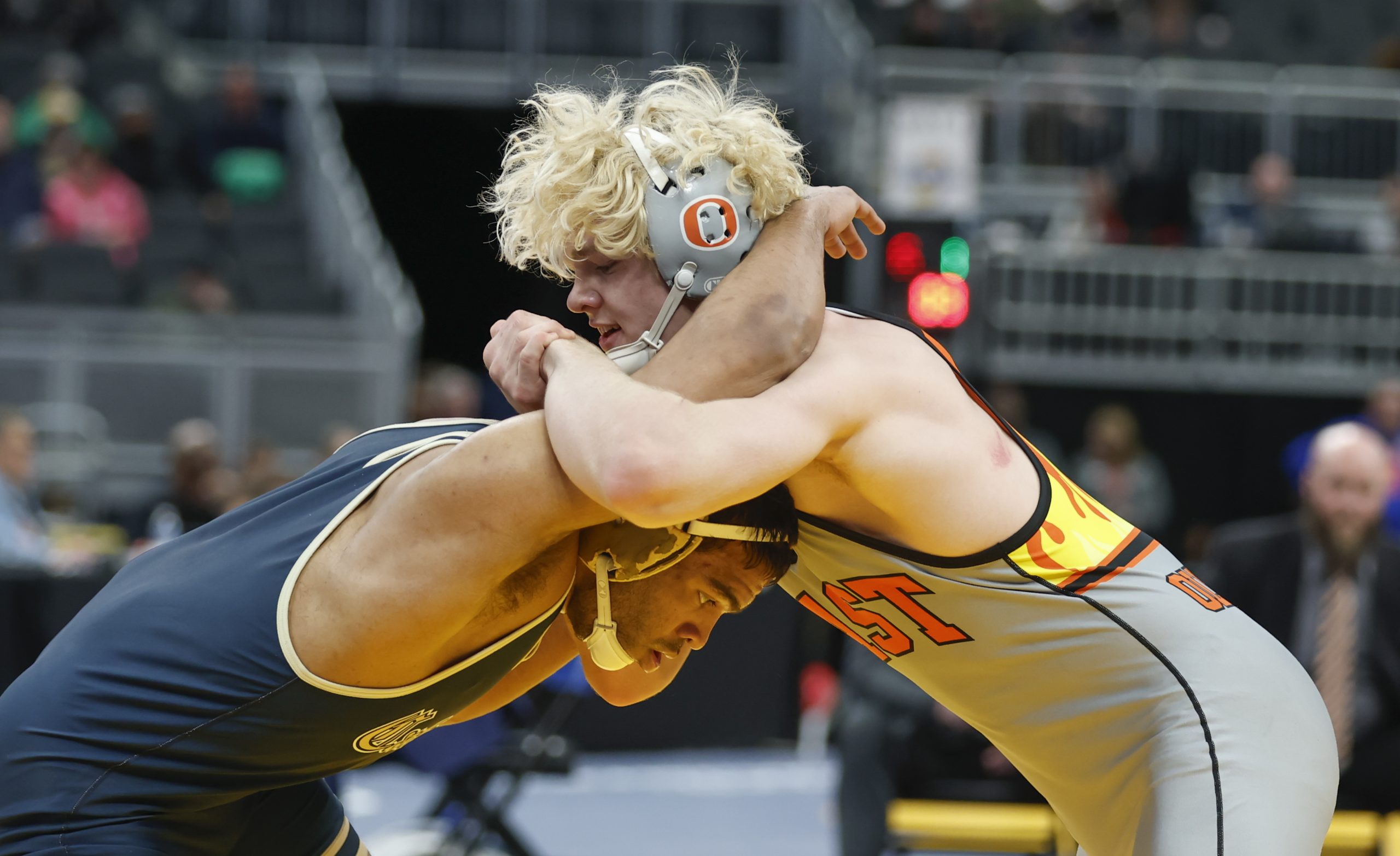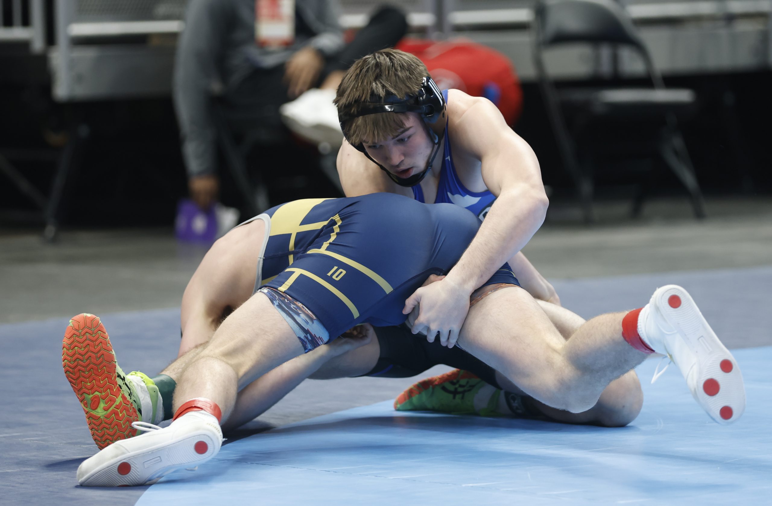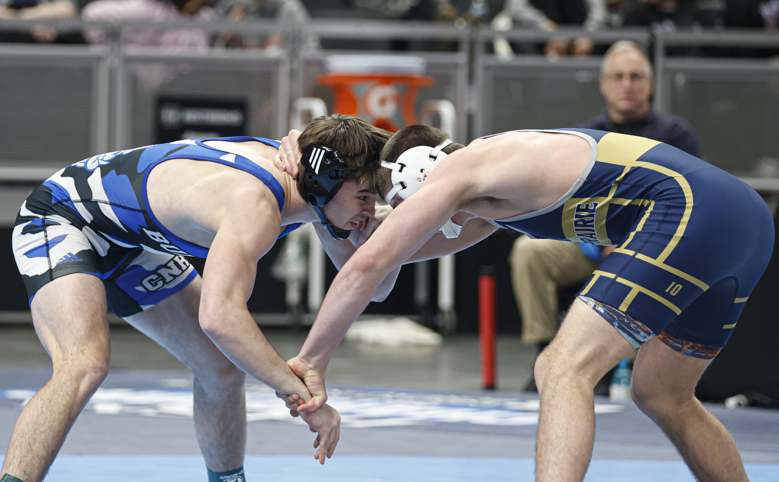 Sophomore Cohen Long, ranked 25th-at 144 pounds, upset seventh-ranked Wyatt Hoppes of Yorktown 4-2. Long scored a takedown 36 seconds into the match and gave up an escape later in the first period. He still led 3-1 before being assessed a penalty for a second stalling violation with 25 seconds remaining, but then managed an escape and held on for the win.