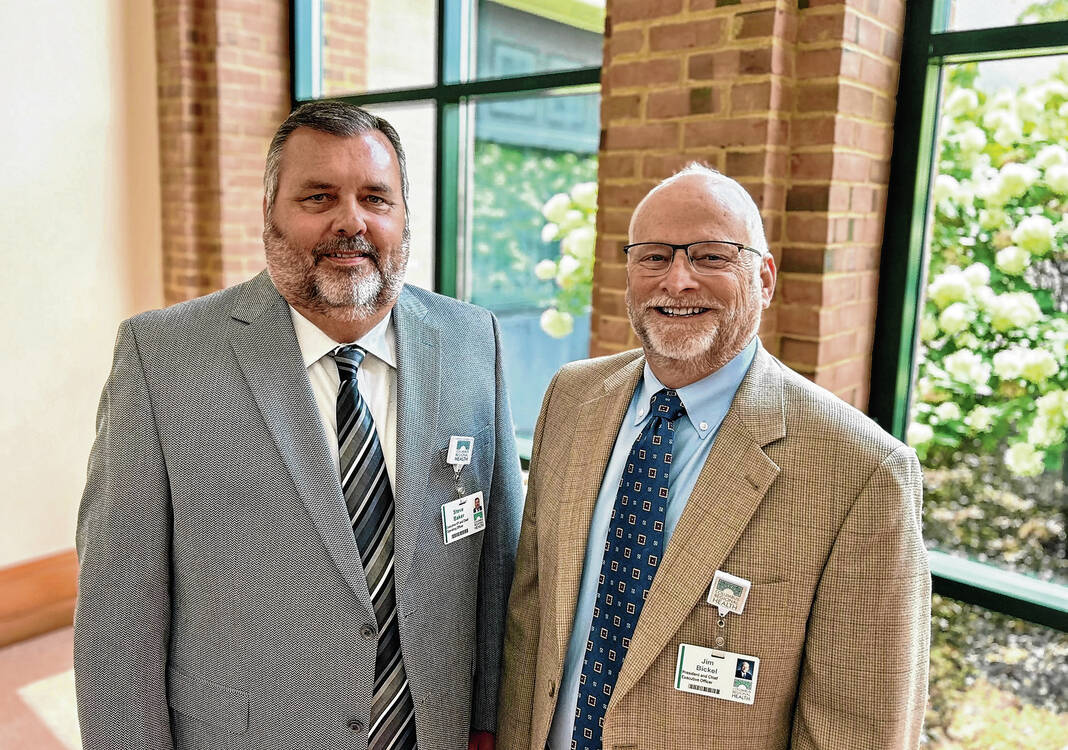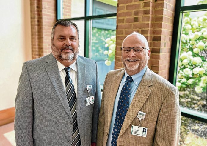 Photo provided by Columbus Regional Health Steve Baker, left, will become president and CEO of Columbus Regional Hospital on April 1, with the retirement of current president and CEO Jim Bickel.