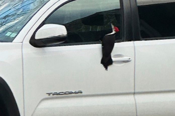 Given their enormous size, piliated woodpeckers are plenty strong enough to break mirrors, but such behavior is “definitely weird,” said Pamela Hunt, senior biologist for avian conservation at the New Hampshire Audubon.