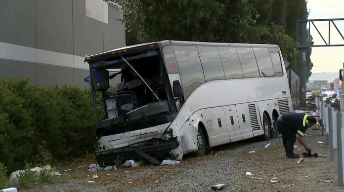 A passenger on the bus, Joe Runnel, told KTLA-TV that people were “begging for mercy” in the moments after the crash that closed two lanes of State Route 60 for several hours.