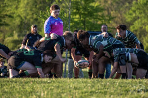 Columbus rugby players line up for a scrum against Zionsville May 10 at Zionsville.