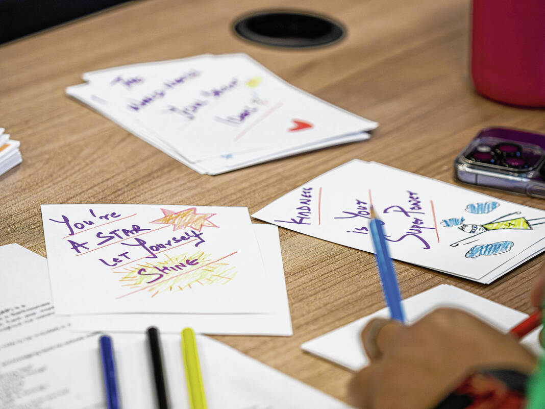 Fellow employee Shelia Strickland included a flower onto one of her notes with what she said was her favorite phrase: “you matter, you are loved, you belong.” Femi Akolade said he doodled the sun on his notes, which he said signifies that the kids are brighter than the sun and they should keep going. Both Strickland and Akodale said they thought making the notes was a great opportunity to encourage kids in the community.