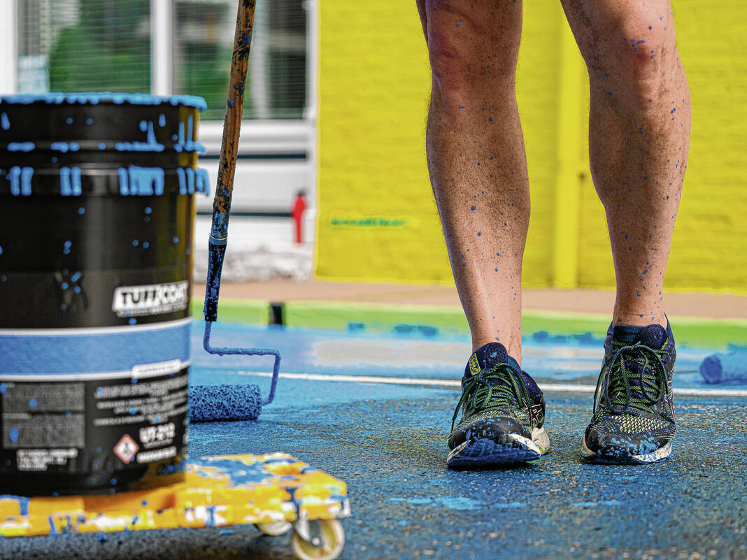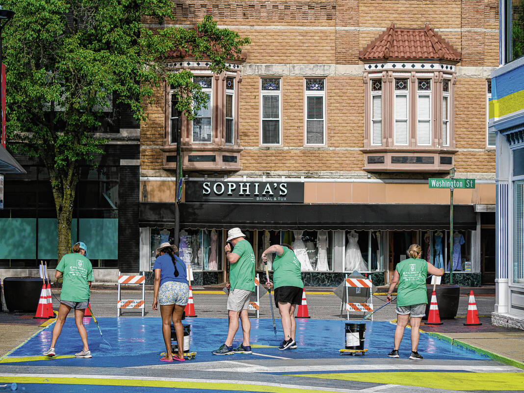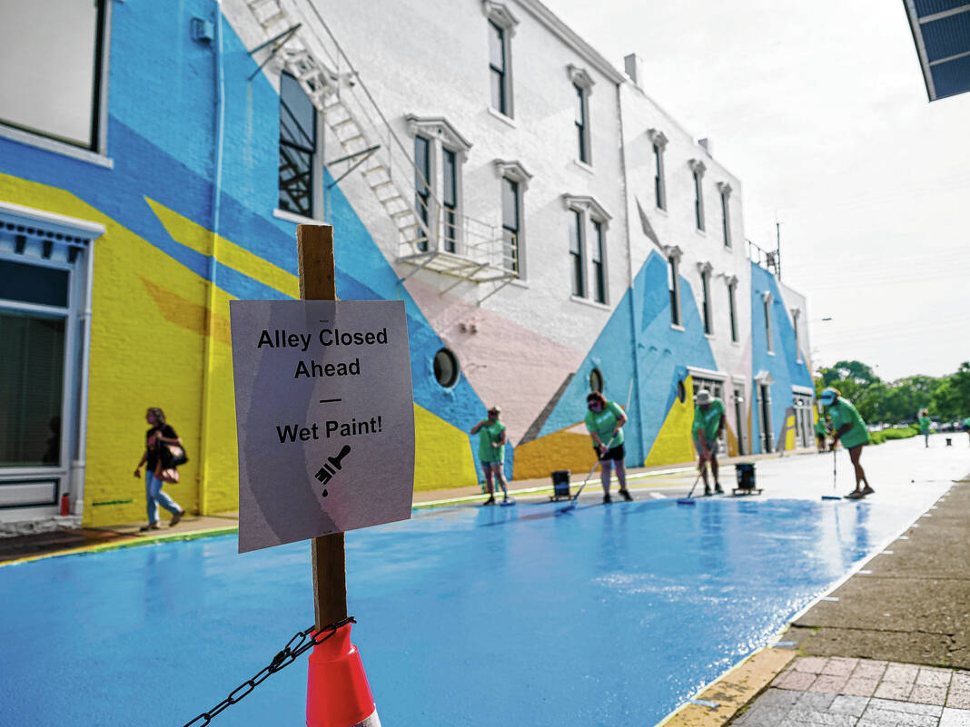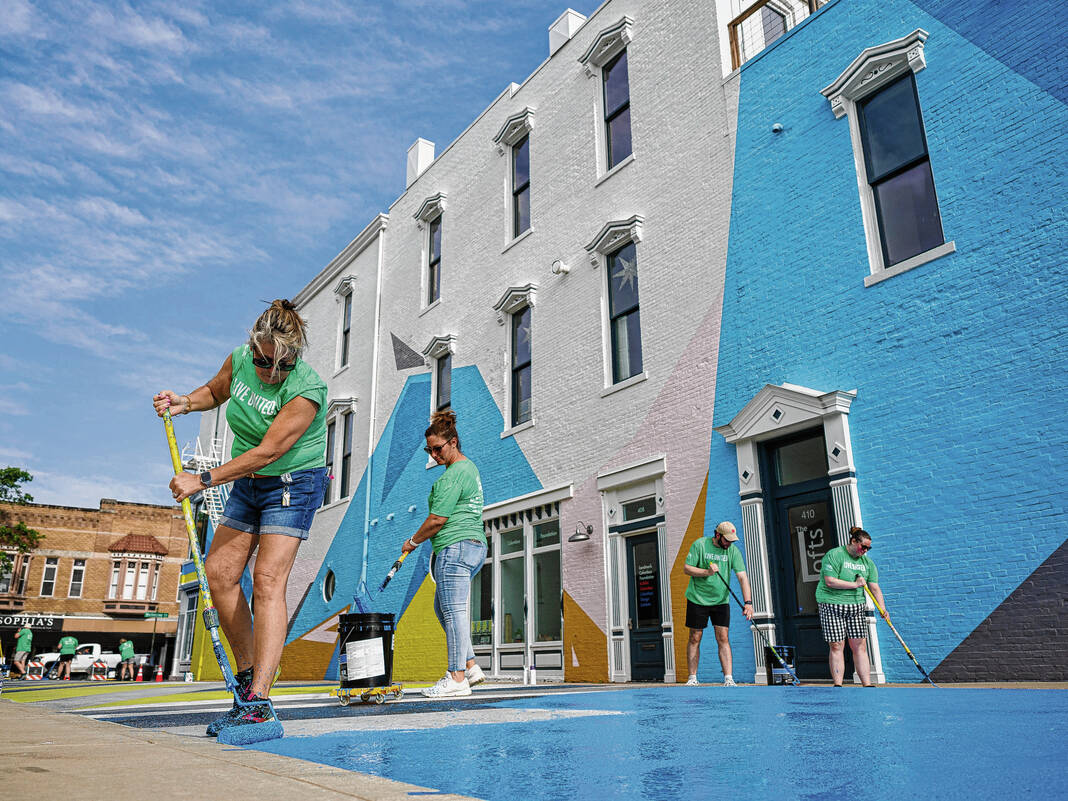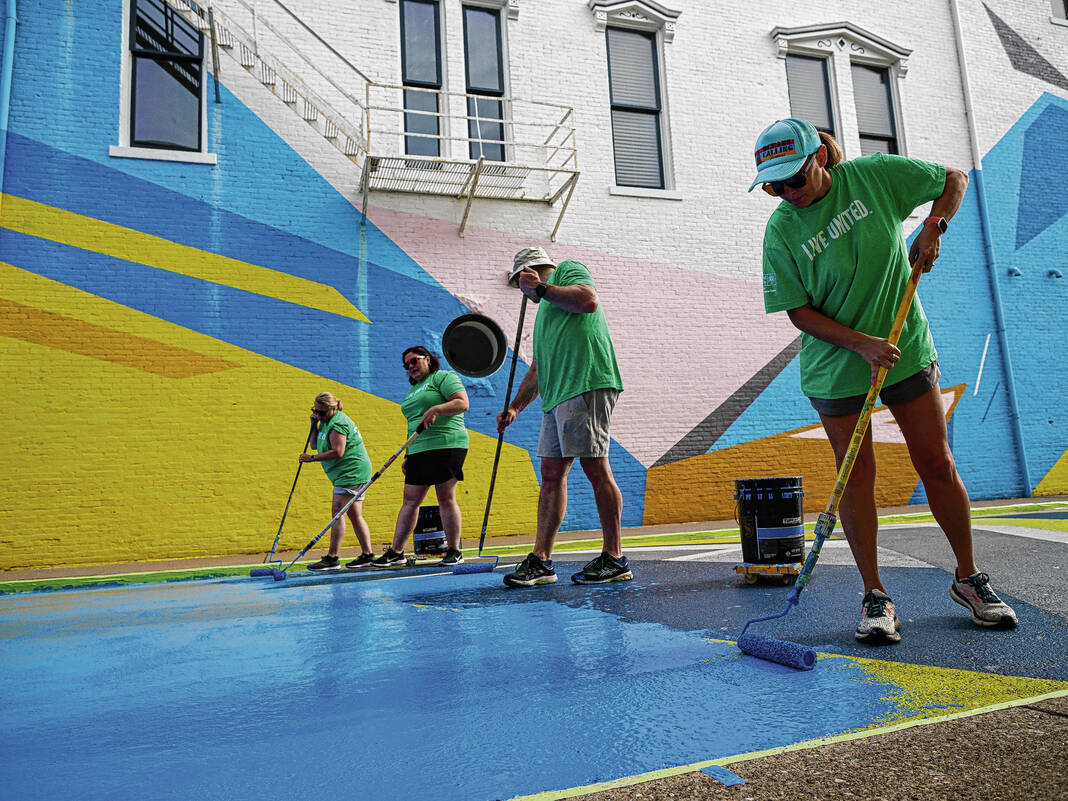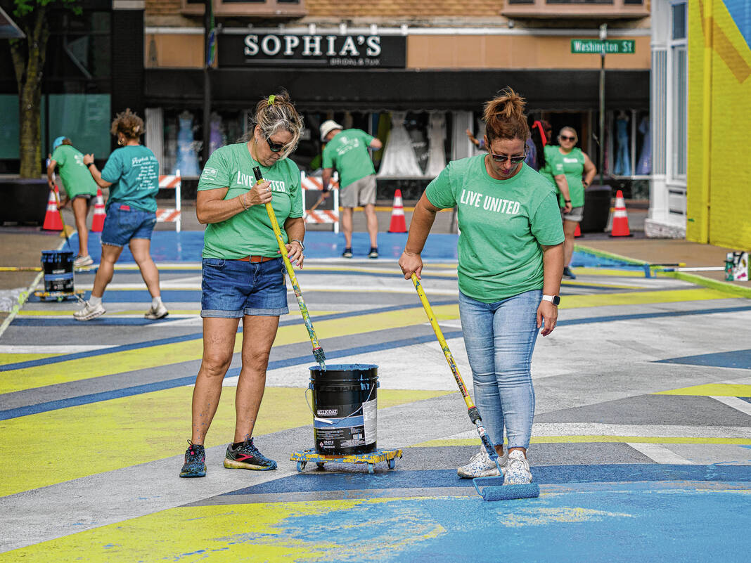 The volunteers working on the notes were among dozens who fanned out across the community to participate in various “Day of Caring” activities, from doing landscaping and cleanup work at various community agencies to preparing outdoor walls for an artistic mural downtown.
