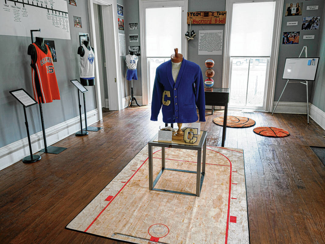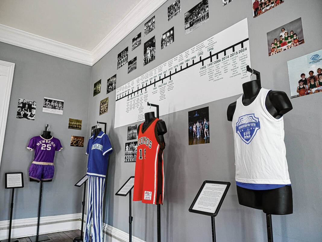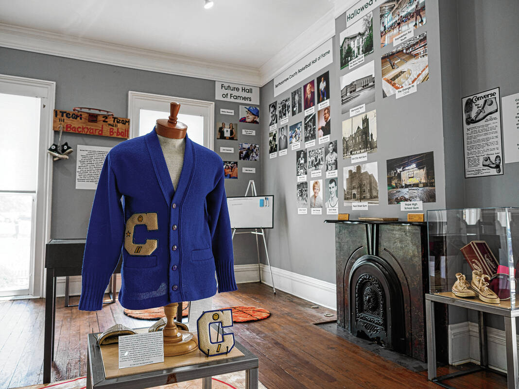On the walls, attendees can see photographs of various local teams, gym locations and coaches throughout the years as well as a timeline showcasing the history of basketball in the community and in the state.