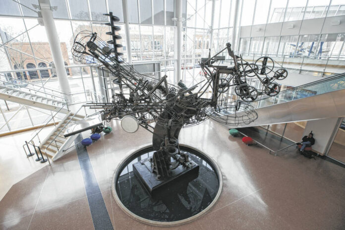 Tinguely, born in 1925, resided in Columbus in the mid-1970s, where he created his 7-ton kinetic sculpture titled “Chaos I” out of materials he gathered from local scrapyards. This piece, commissioned by J. Irwin and Xenia Miller and Clementine Tangeman in 1971, has gone on to be one of Tinguely’s most important U.S. works and a centerpiece of The Commons, according to the Columbus Visitors Center.