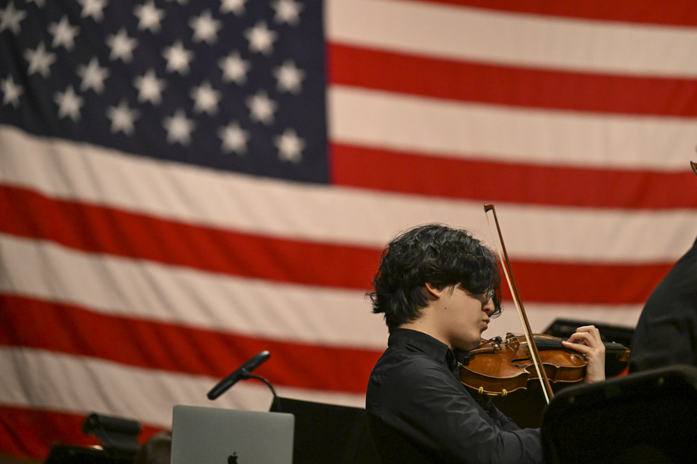 A violinist with the Columbus Indiana Philharmonic plays their instrument during the annual Salute! concert at Columbus North High School on May 23 2025, in Columbus, Indiana.
