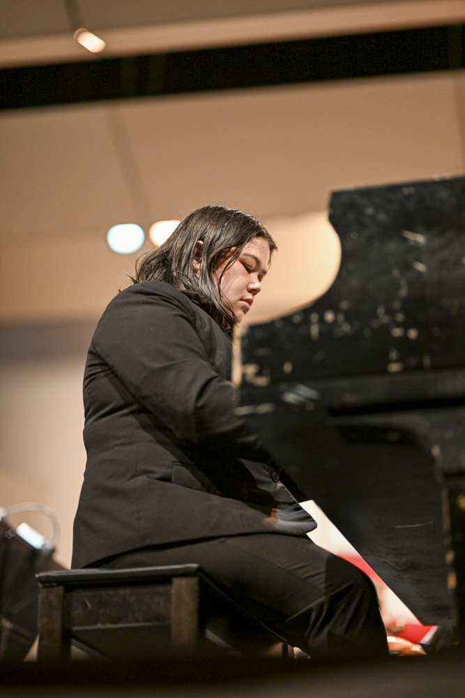 Pianist Jasmine Yang, winner of the 2024 Betty F. Brown Award for Instrumental Excellence, plays a piece during the Columbus Indiana Philharmonic's annual Salute! concert at Columbus North High School on May 23 2025, in Columbus, Indiana.