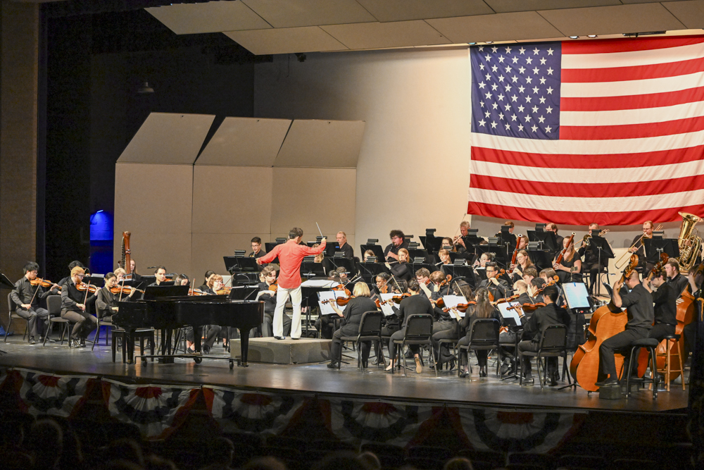 Music Director Isaac Selya conducts the opening piece as the Columbus Indiana Philharmonic performs during the annual Salute! concert at Columbus North High School on May 23 2025, in Columbus, Indiana.