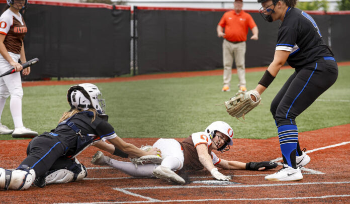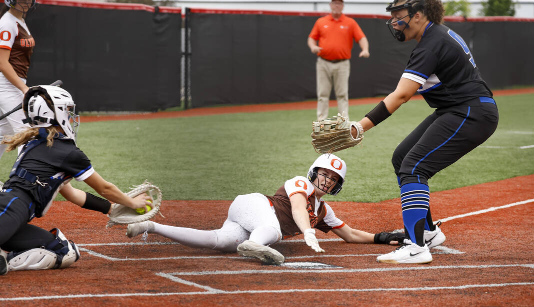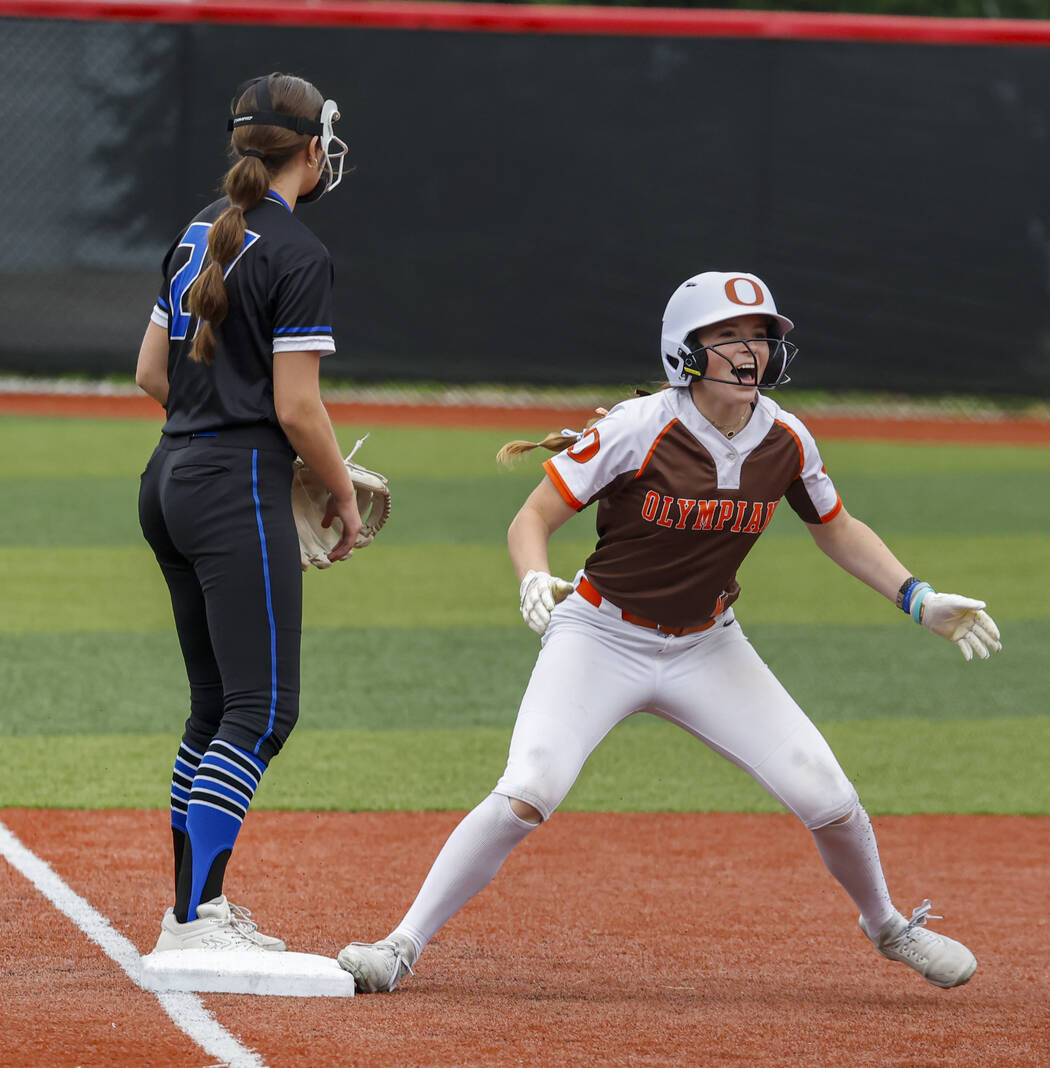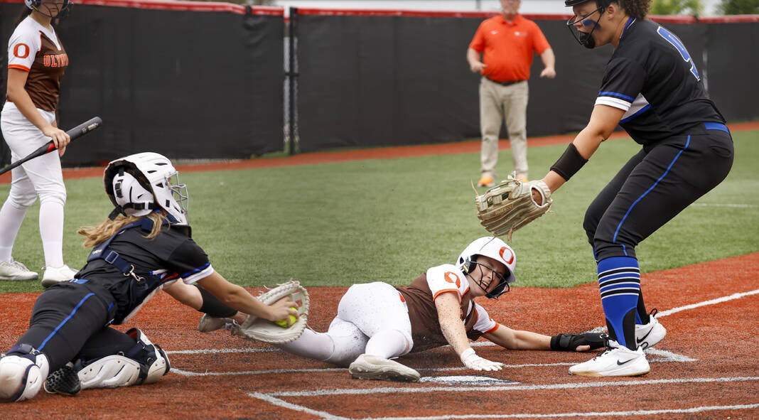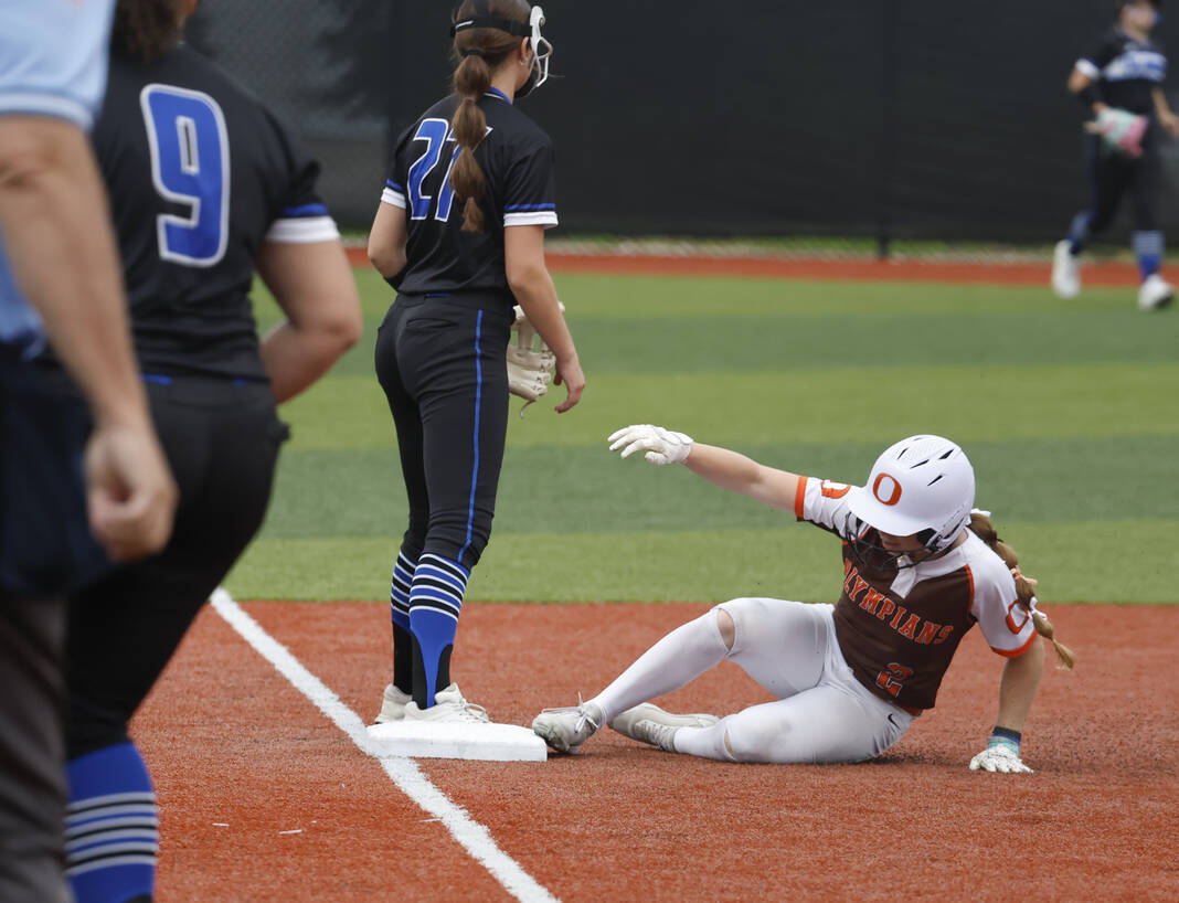 Watkins struck again in the third inning, hitting a fly ball to left that turned into a triple and then sliding safely into home on a passed ball to double the Olympians’ lead.