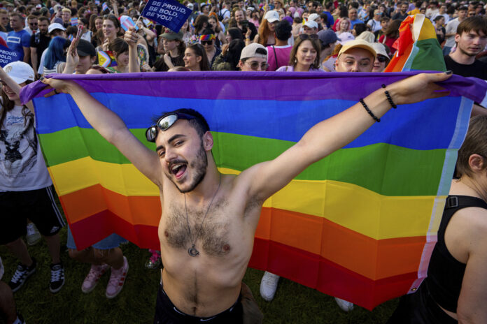 BUCHAREST, Romania (AP) — Tens of thousands of LGBTQ+ supporters took to the streets of Romania’s capital Saturday for its annual gay pride parade, following a tense election cycle marked by an increase in hate speech against the community.