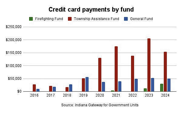 Columbus Township also reported striking increases in credit card payments in the township assistance fund under those three categories in recent years.