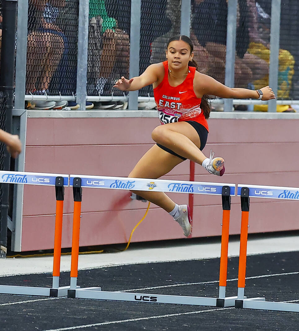 Chambers, a sophomore, came in seeded 12th in the 100 hurdles for her first state meet, meaning she needed to move up three spots to reach the finals and assure herself of a medal. She did that by qualifying ninth in the prelims with a 14.73, then moved up another spot to eighth in the finals at 14.87.