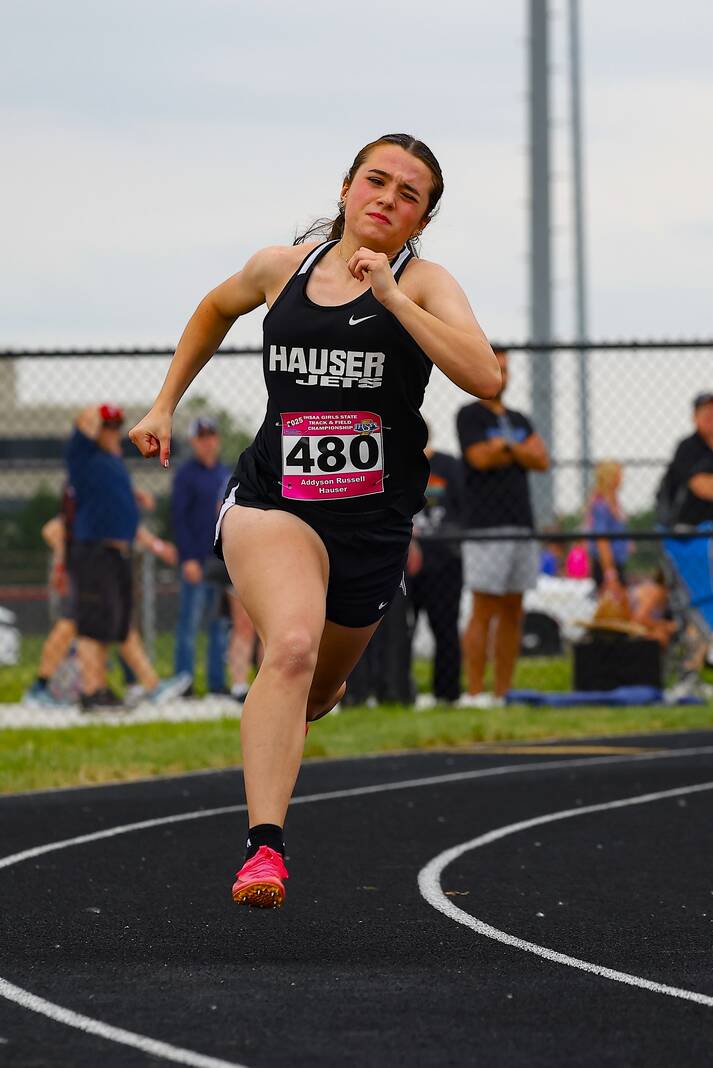 Meanwhile, East senior Carsyn Schlehuser and Hauser freshman Addyson Russell had an adventure in the 200 prelims in their first state appearances.