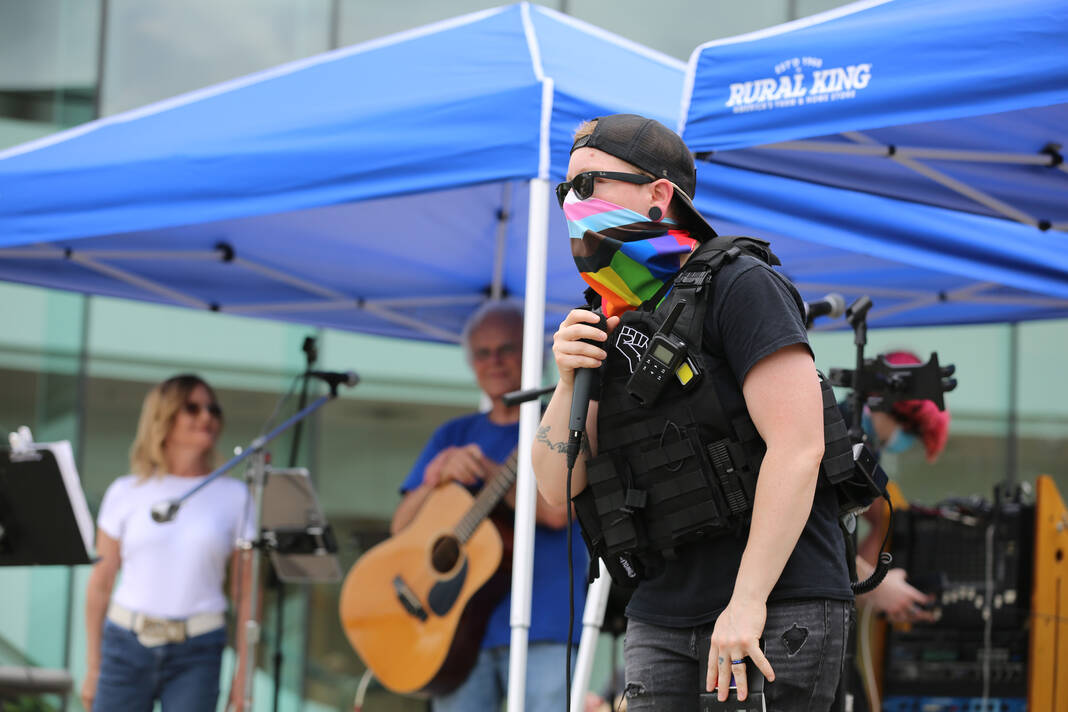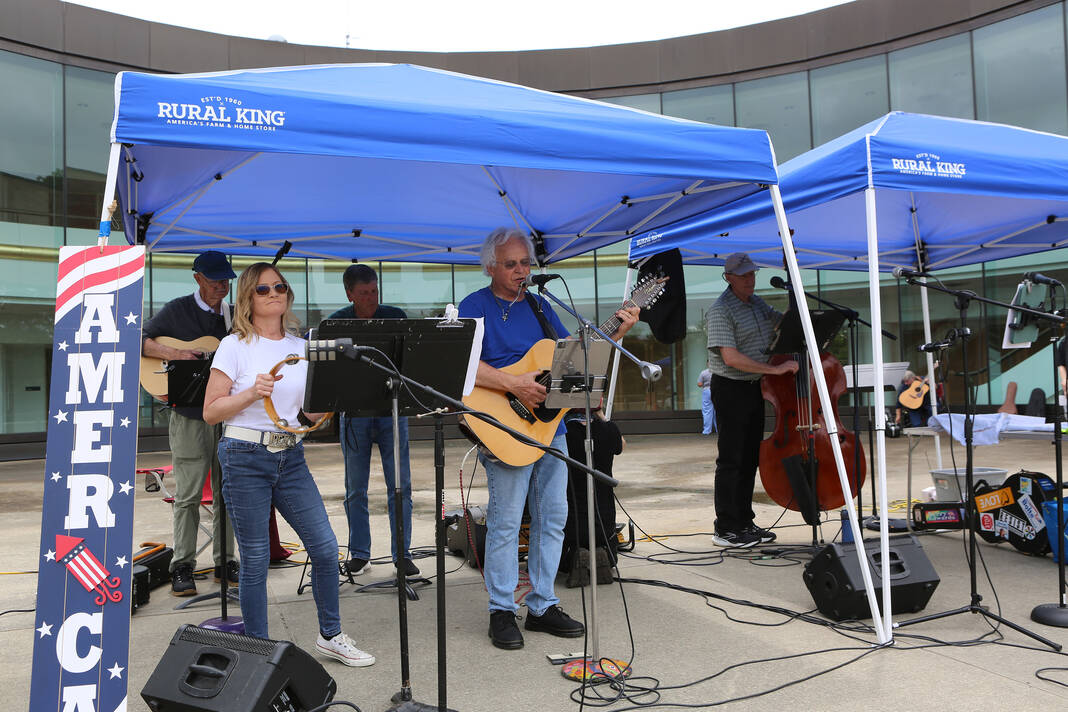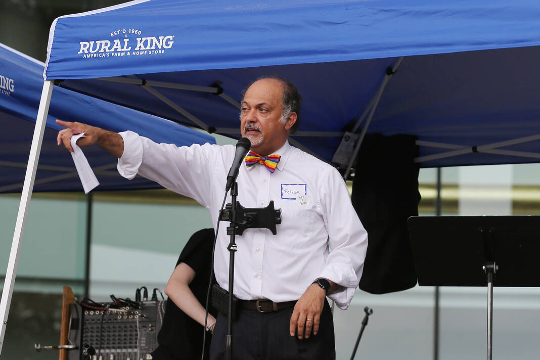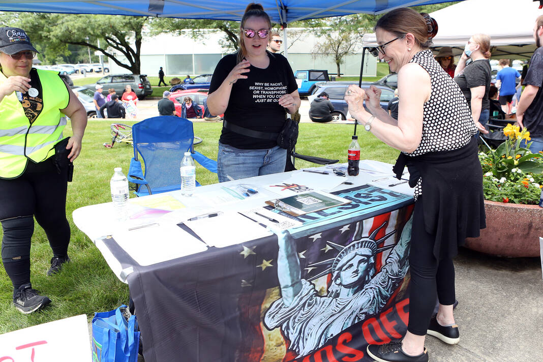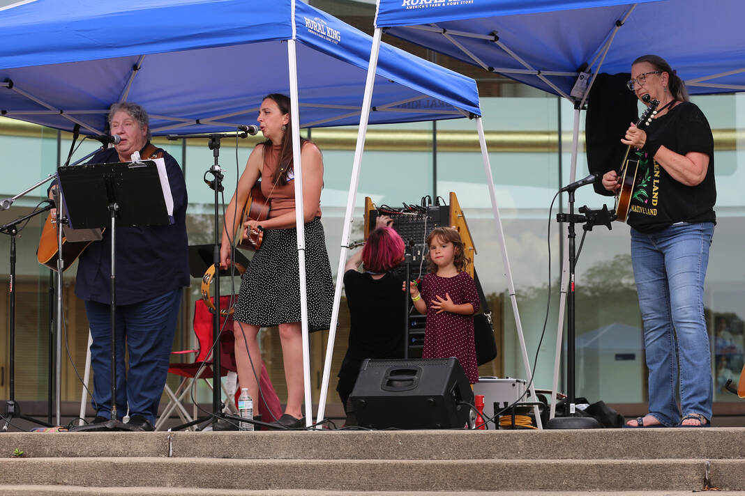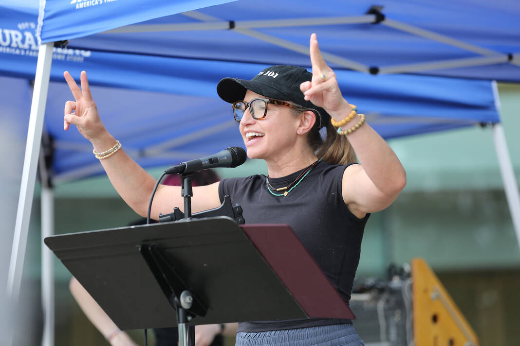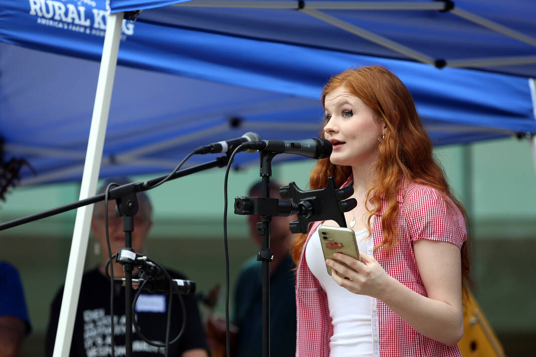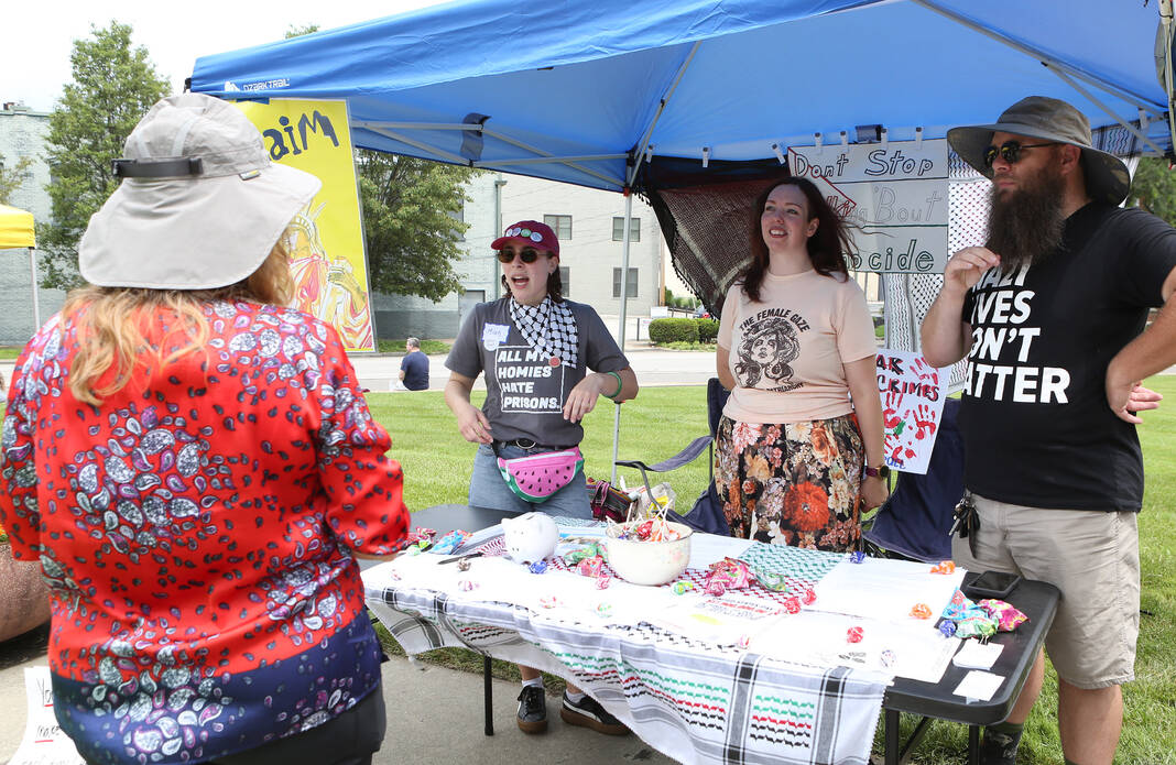 Carla Clark | For The Republic Protestors gather and listen to speakers during the No Kings Protest at Columbus City Hall held on the No Kings Nationwide Day of Defiance, Columbus, Ind., Saturday, June 14, 2025.