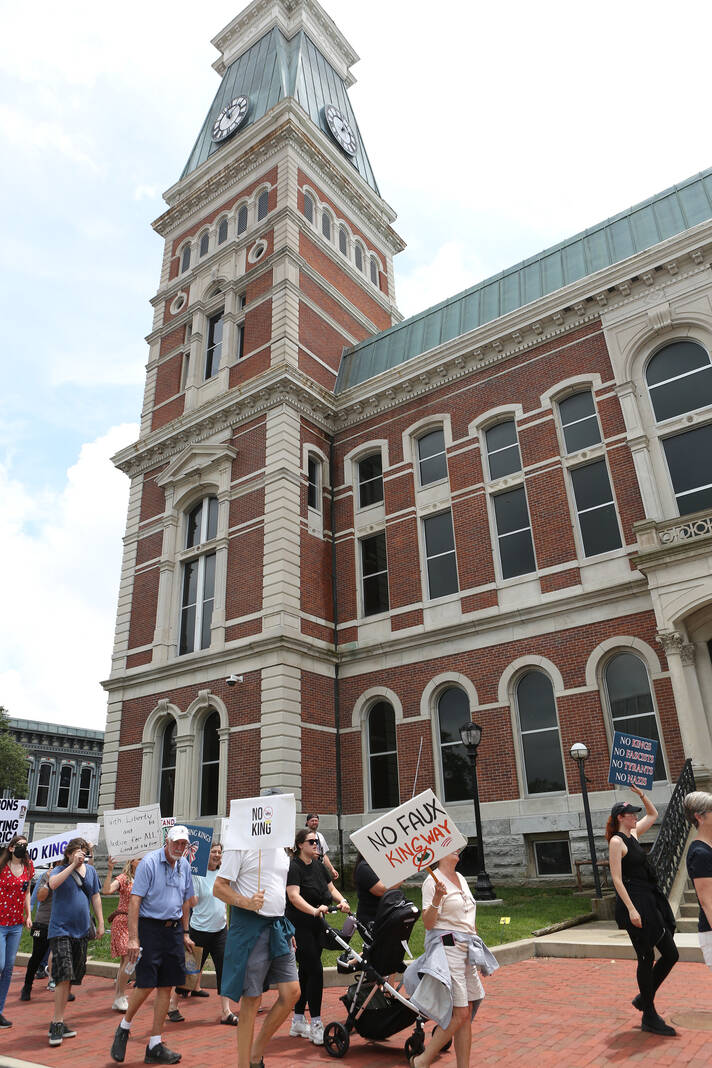 Columbus residents joined with protesters around the U.S. Saturday for a “No Kings” rally in downtown Columbus at City Hall.