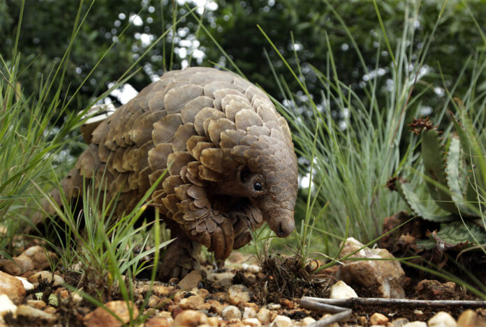 The pangolin eats insects and rolls into a ball when threatened by predators. The Fish and Wildlife Service said pangolin populations have declined due to targeting by poachers and criminal activity, noting “proceeds from the illicit sale of pangolins and other imperiled species often fund serious crimes, including drug and arms trafficking.”