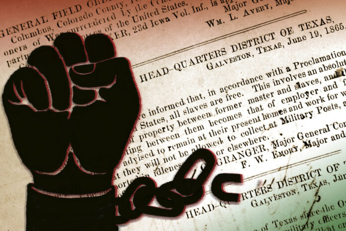 The holiday to mark the end of slavery in the U.S. goes back to an order issued on June 19, 1865 as Union troops arrived in Galveston at the end of the Civil War. General Order No. 3 declared that all enslaved people in the state were free and had “absolute equality.”