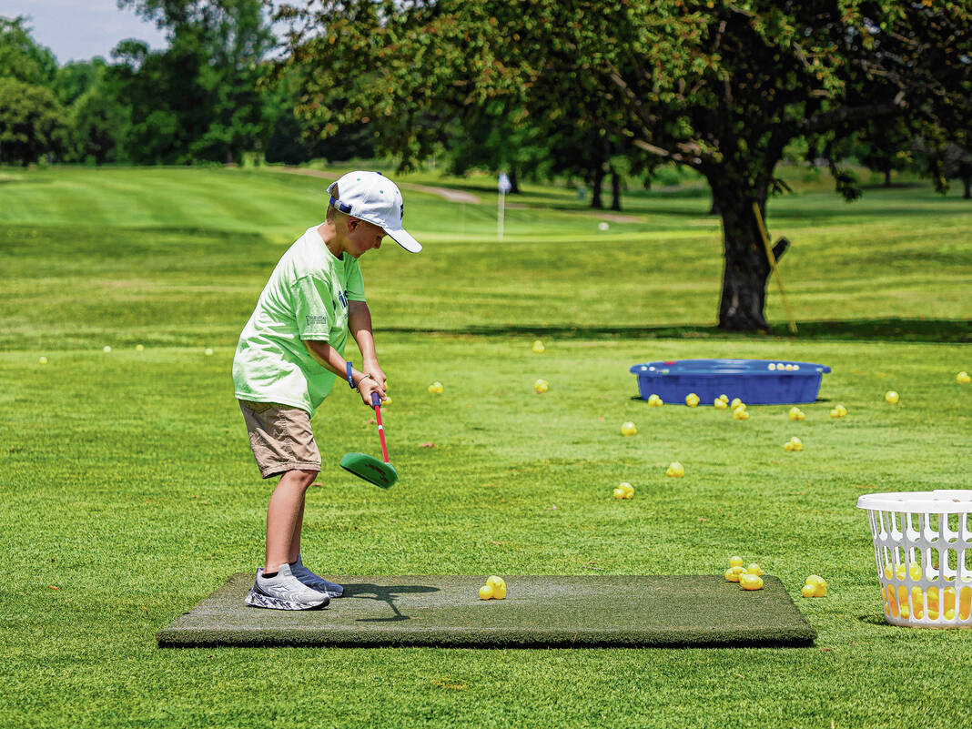 The Rices were among about 80 kids, most of which ranged from 5-to-10 years old, who took part on the clinic, which was held in conjunction with this weekend’s Epson Tour Otter Creek Championship. They took turns trying to chip into plastic swimming pools, hitting into the inflatables and putting fuzzy tennis balls toward a target.
