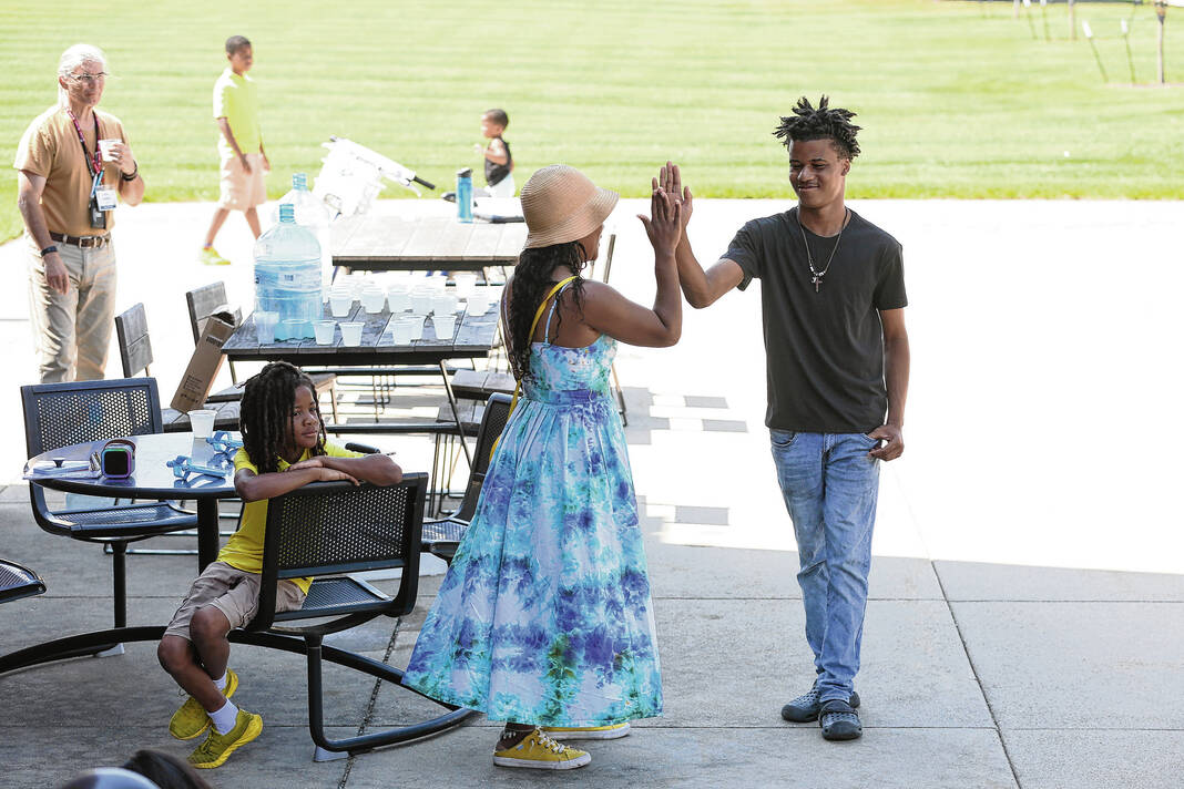Carla Clark | For the Republic Stephanie Serriere, at right, introduces the Lemonade Bros. for their presentation at the Columbus Learning Center, Columbus, Ind., Tuesday, June 24, 2025