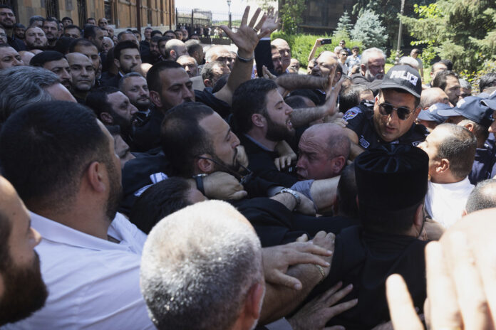 YEREVAN, Armenia (AP) — Security forces faced off with crowds Friday at the headquarters of the Armenian Apostolic Church as the government sought to arrest a clergyman in the latest move against outspoken critics of Prime Minister Nikol Pashinyan.