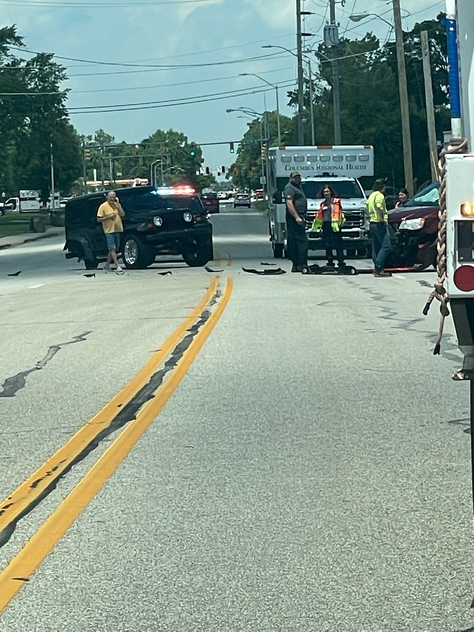 A Columbus Regional Health ambulance is also at the scene.